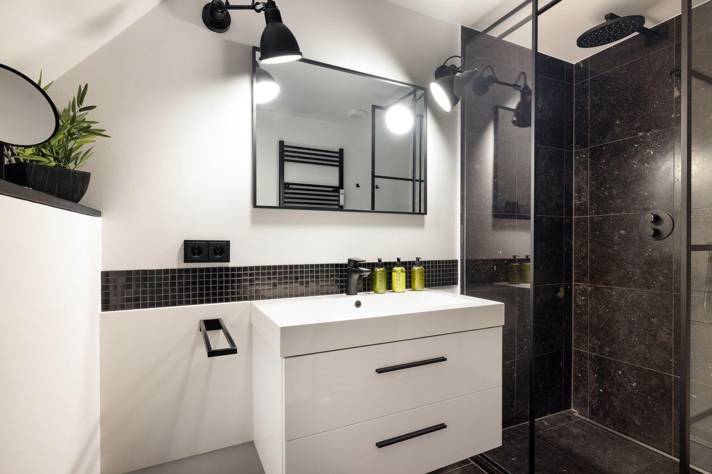 Die Wohnung erstreckt sich mit ca. 55 m² über die gesamte obere Etage und bietet bis zu 2 Personen Platz. Durch stilvolles und modernes Interieur finden Sie hier ein modernes Heim auf Zeit. Komfort wie Flat-TV, Wlan, Backofen, Induktionsherd, großer Kühlschrank, Nespressomaschine etc. sind selbstverständlich. Zum Objekt gehört auch anliegender Pkw-Stellplatz.