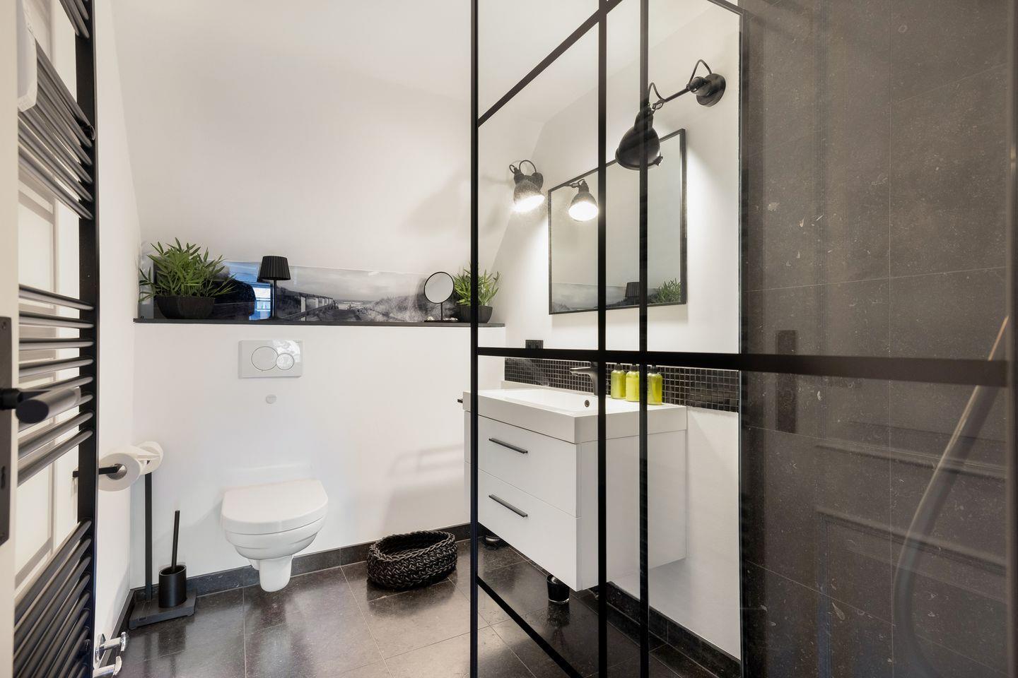 Bad 1: helles Duschbad mit Einzelwaschtisch Glasdusche Handtuchhalter und großem Spiegel