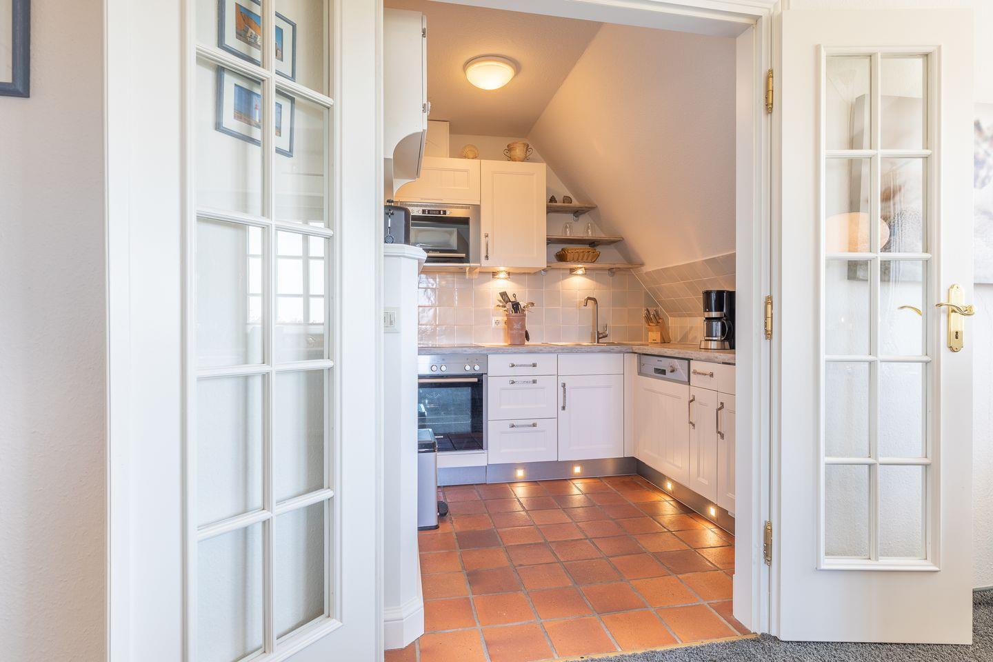 Küche: durch Flügeltüren trennbare Einbauküche