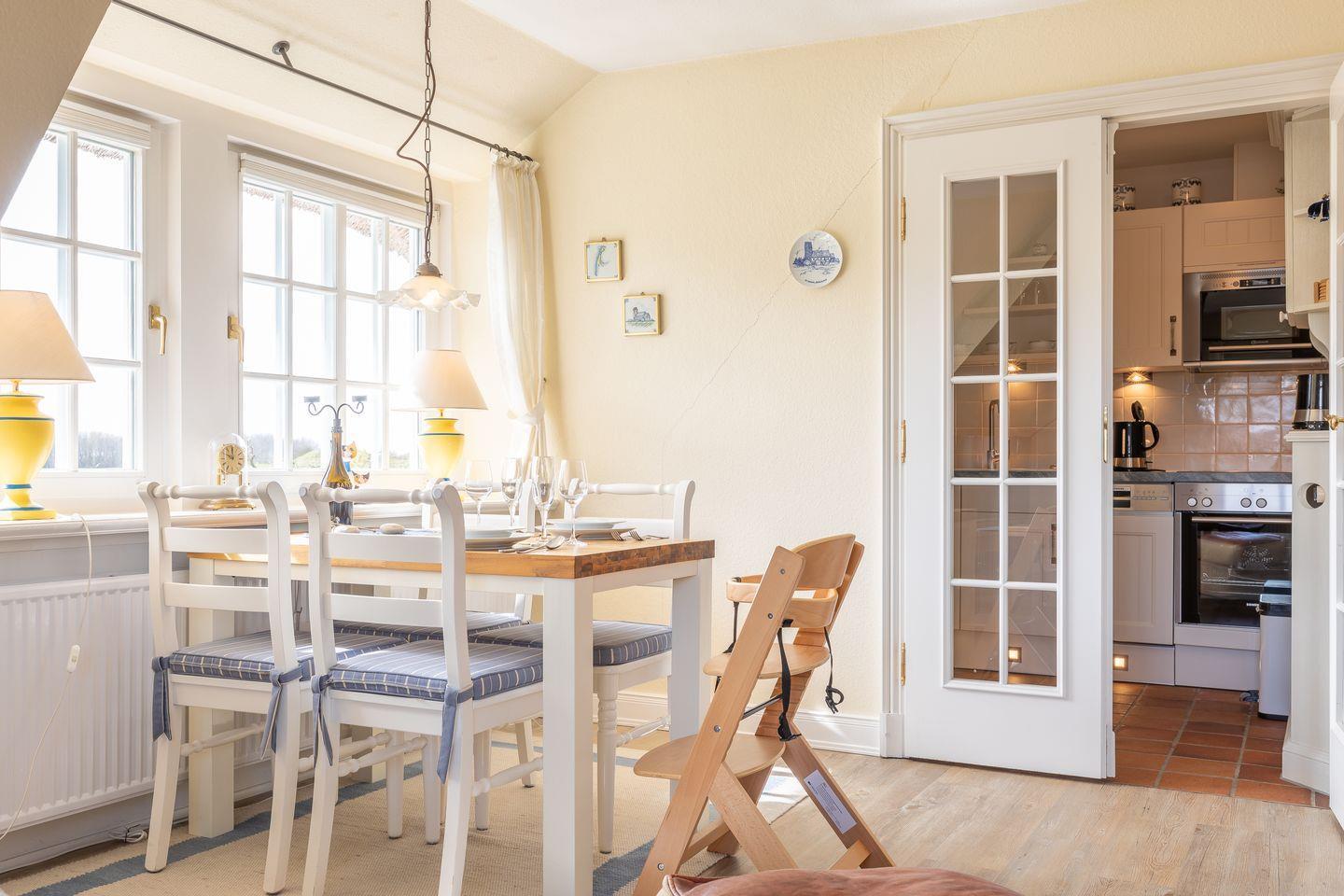 Das reetgedeckte Haus liegt ca. fünf Gehminuten vom Wattenmeer entfernt. Die Einrichtung ist hochwertig, sehr gepflegt und gemütlich. Die Wohnung verfügt über jeglichen Komfort wie zwei Flat-TV, WLAN, Stereoanlage mit CD/ DVD, Geschirrspüler, Cerankochfeld, Nespresso, Mikrowelle mit integrierter Dunstabzugshaube, Backofen und Waschtrockner. Zur Wohnung gehört keine Gartennutzung.