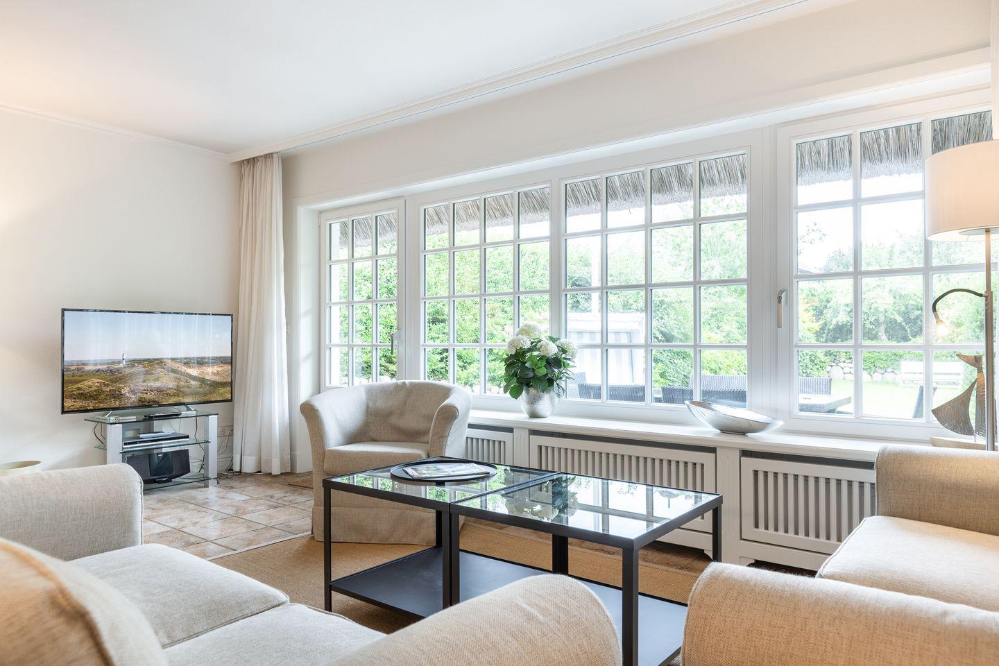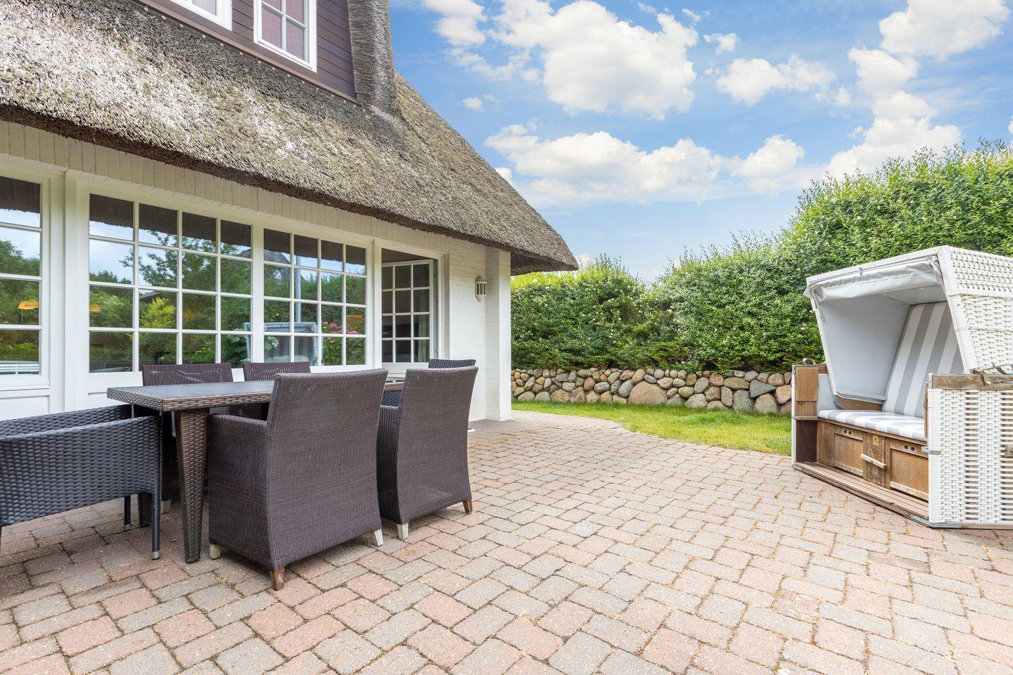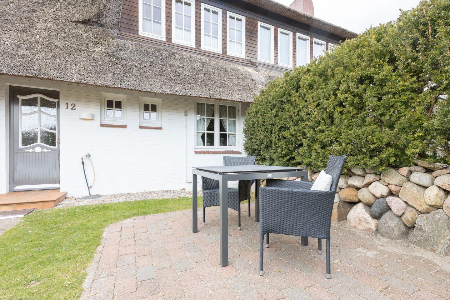 Dieses Reihenendhaus in Ost-/ Süd-/ Westlage ist ca. 120 m² groß und bietet zwei bis fünf Personen Platz. Das reetgedeckte, gepflegte Haus liegt am Ende einer Sackgasse mit großem Garten. Die Einrichtung ist hell, gemütlich und geschmackvoll. Das Haus bietet Komfort wie Flat-TV, Stereoanlage, Safe, Geschirrspüler, Mikrowelle, Backofen, (kein Telefon).