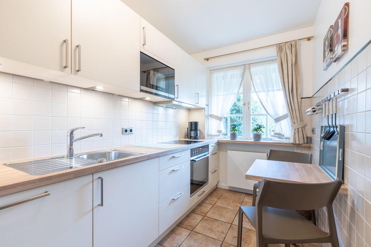 Küche: separate Einbauküche mit Geschirrspüler, Backofen, Mikrowelle