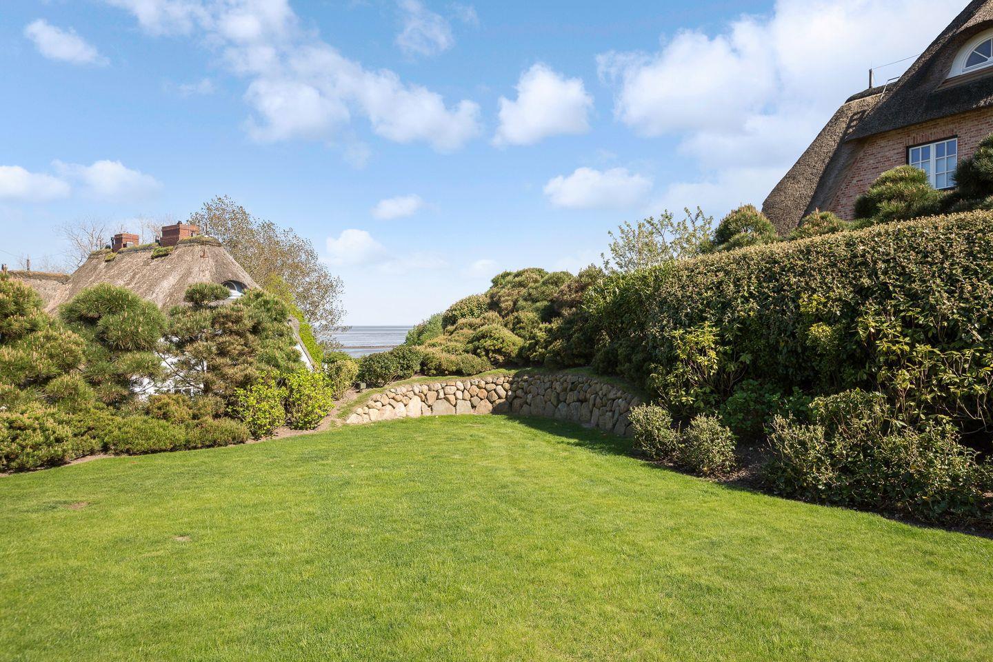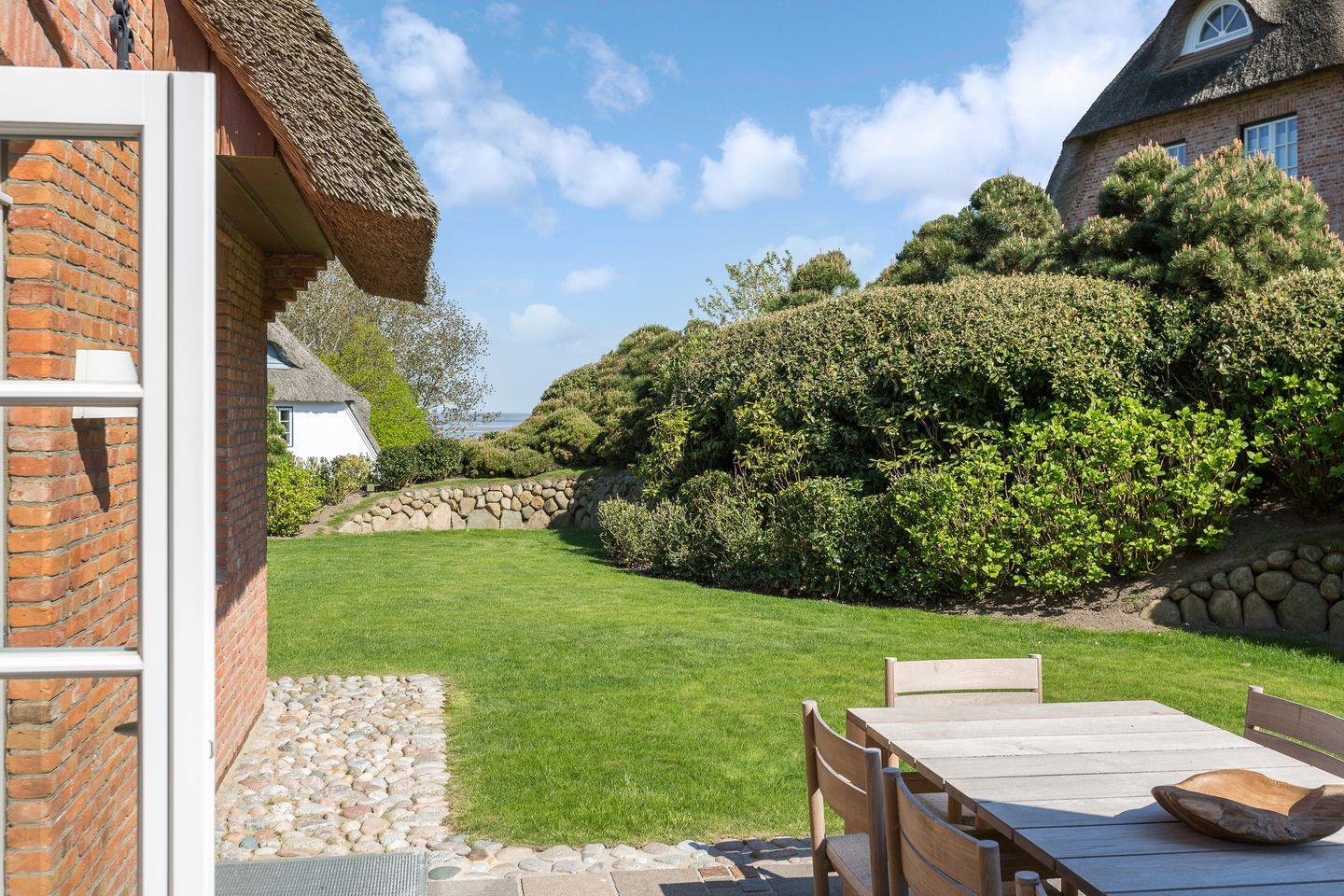 Traumhaftes reetgedecktes Einzelhaus auf Sylt mit Meerblick, Sauna und großem Garten nahe Wattenmeer und Strand.