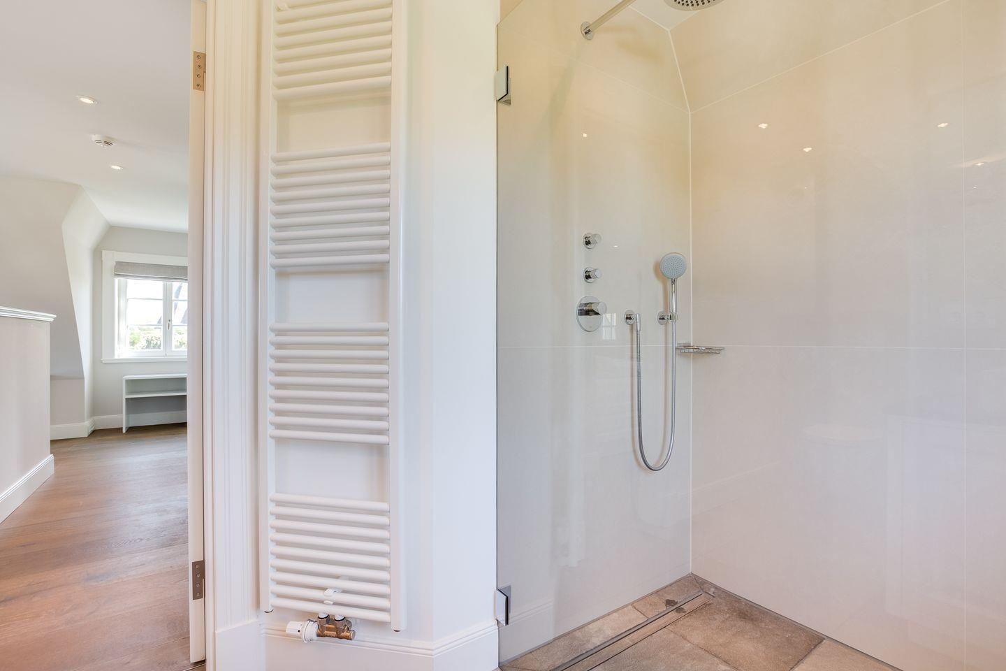 Bad 3: helles Vollbad mit großzügiger Badewanne und ebenerdiger Dusche sowie Fußbodenheizung und Handtuchwärmer