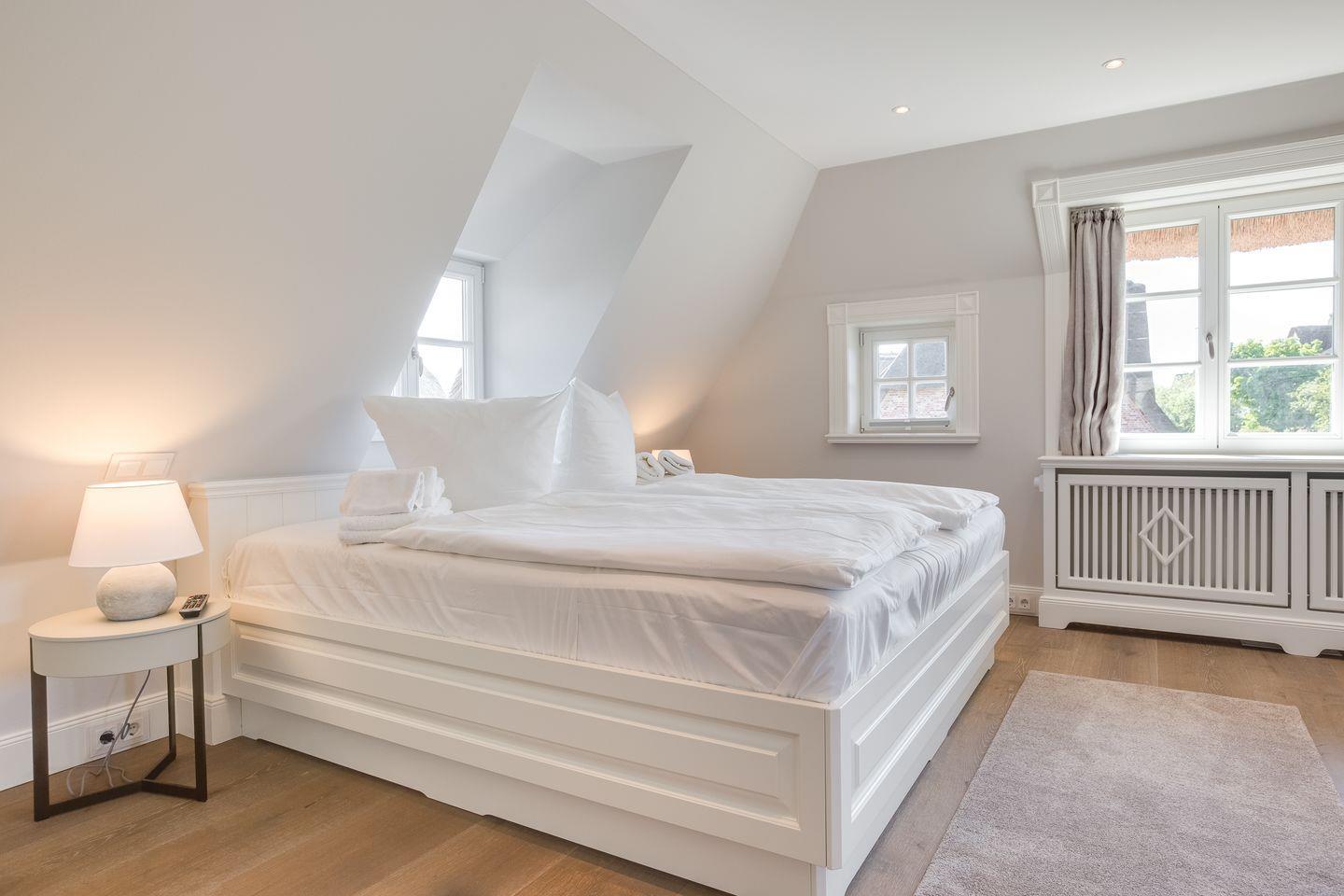 Dieses mit Reet gedeckte Einzelhaus liegt in besonderer Lage am Ende einer Sackgasse, nördlich der Keitumer St. Severin Kirche in unmittelbarer Nähe zum Wattenmeer. Das helle und großzügige Haus über drei Ebenen (Erdgeschoss, Obergeschoss, Souterrain) ist ca. 240 m² groß und bietet zwei bis vier Personen ausreichend Platz. Zudem liegt es auf einem großen eingewachsenen Grundstück mit einem fantastischen Blick auf das Wattenmeer. Darüber hinaus bietet das geräumige und hochwertiges Haus jeglichen Komfort wie Sauna, Gaskamin, WLAN, im Wohnzimmer und in allen Schlafzimmern Flachbildschirme, Geschirrspüler, Weinkühler, Mikrowelle, Backofen, Kühl- und Gefrierschrank, Nespresso Kaffeemaschine (ohne Kapseln), Induktionsherd, Waschmaschine und Trockner. Das Haus ist von einem großzügigen gepflegten Garten mit zwei Terrassen zum Süden und Westen umgeben. Ein Stellplatz steht Ihnen vor der Garage zur Verfügung. Bitte beachten Sie, dass dieser abschüssig zur Garage hin ist.