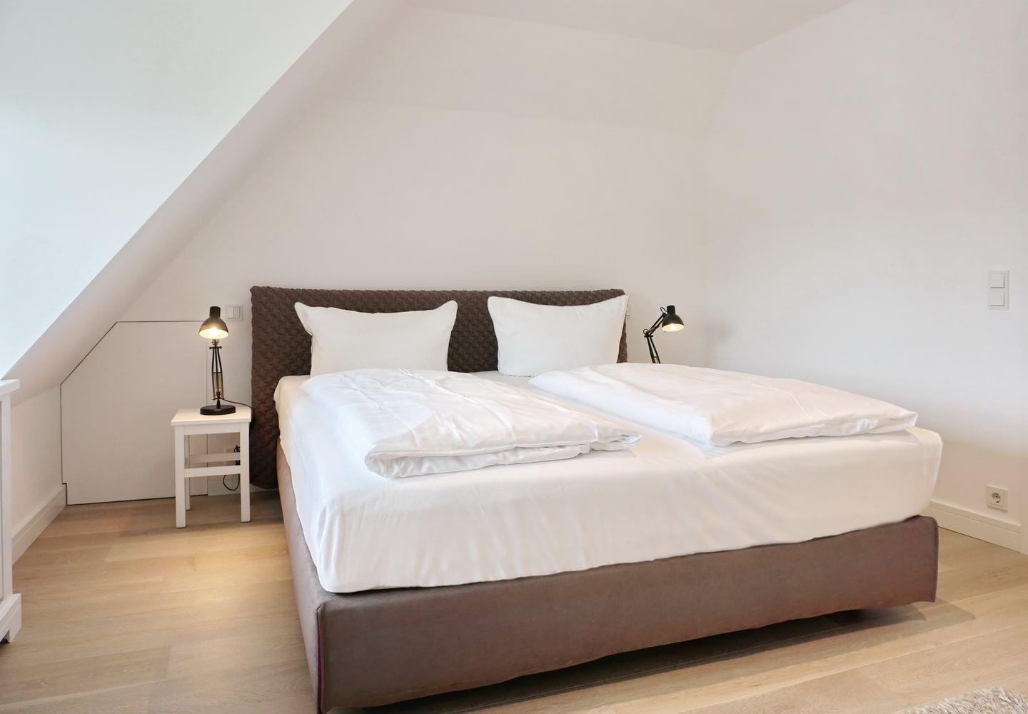 Moderne Ferienwohnung "Lüüvhuk" in Keitum auf Sylt, 680 m vom Meer, mit gemütlichem Schlafzimmer und voll ausgestatteter Küche.