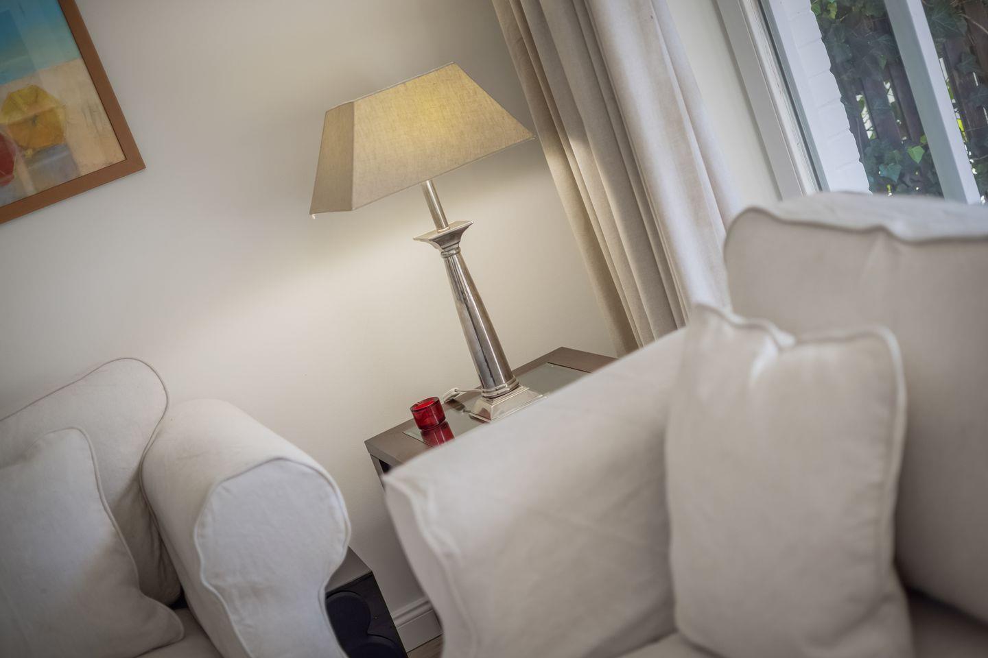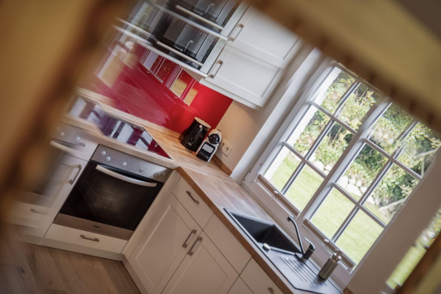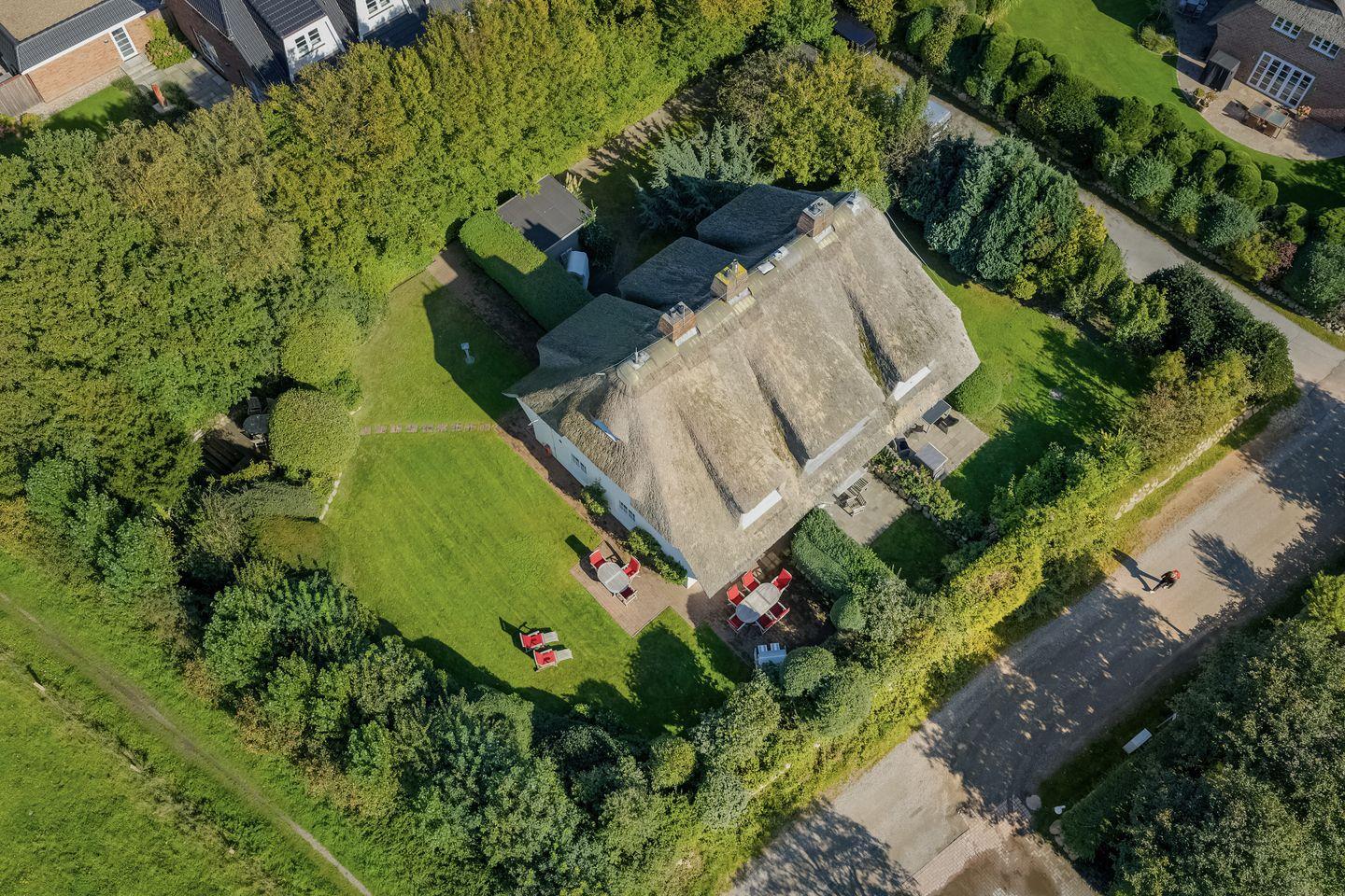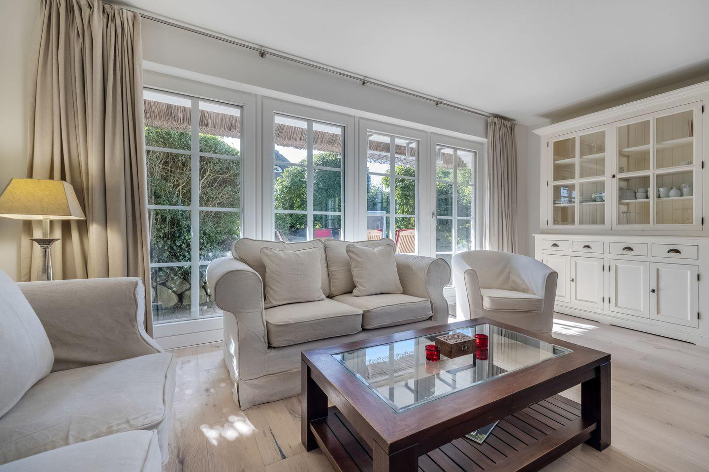 Das hier vorgestellte, geräumige Reihenendhaus (Erdgeschoß, Obergeschoß und Dachgeschoß) ist ca. 120 m² groß und bietet zwei bis sechs Personen ausreichend Platz. Das reetgedeckte Haus liegt mit einem schön gestalteten und eingewachsenen Garten im Südwestteil des Ortes. Das Domizil besticht durch seine einfache aber effektive Ausstattung. Durch den Naturholzboden ist das ganze Haus für Hausstaub-Allergiker geeignet. Es verfügt über Komfort wie Kamin, LED-TV, am TV angeschlossene Stereoanlage (CD, DVD, I-Pod), W-LAN, Cerankochfeld, Mikrowelle, Geschirrspüler, Waschmaschine und Trockner. Selbstverständlich gehört ebenso ein Pkw-Stellplatz zum Objekt.