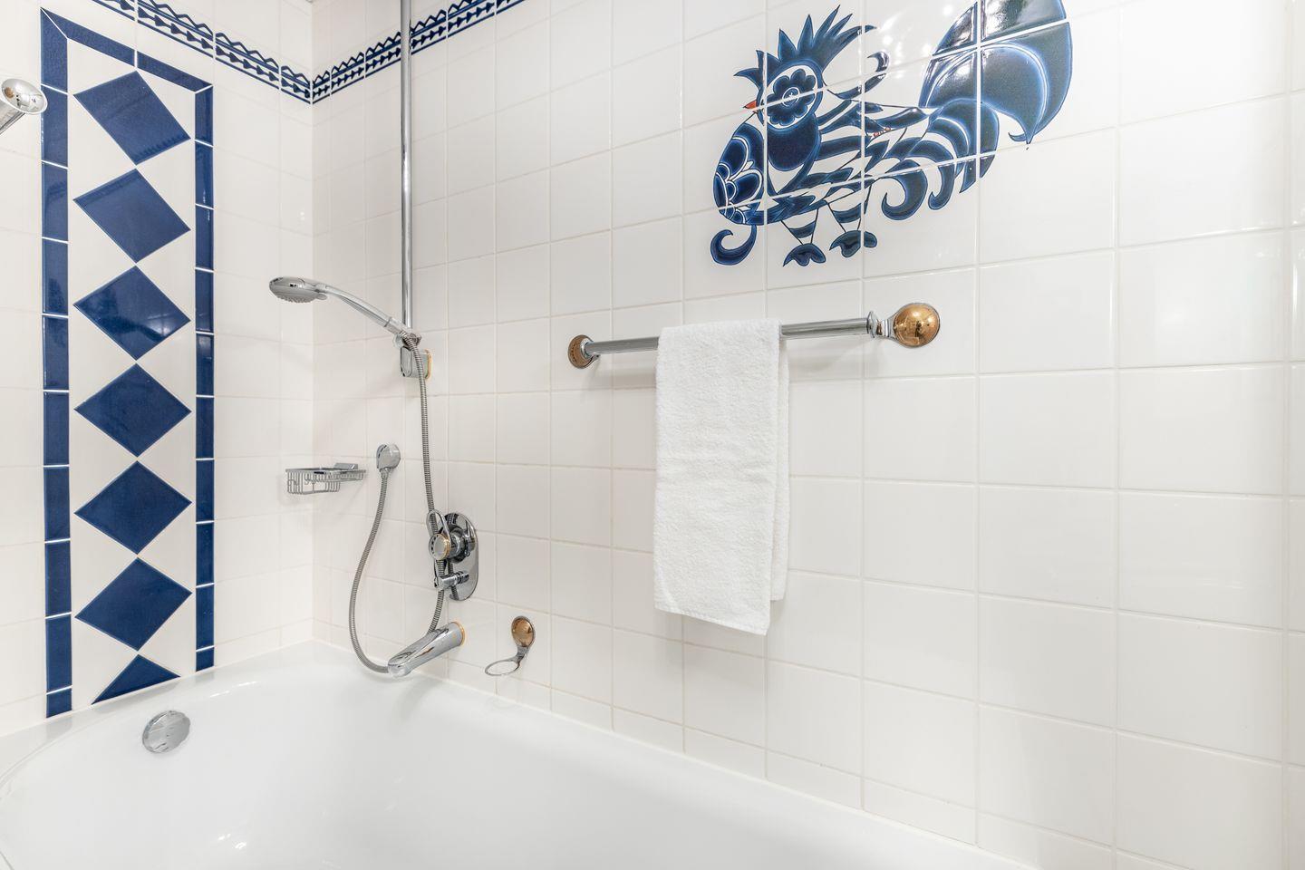 Bad 1: Badezimmer mit Badewanne, WC und Ablagefläche
