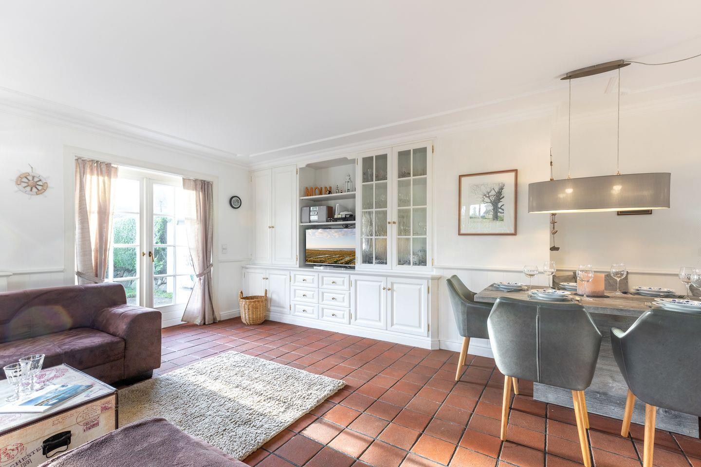 Entdecken Sie das Landhaus Kairem, Ihre Ferienwohnung auf Sylt! Diese großzügige Unterkunft bietet Platz für bis zu fünf Personen und verfügt über drei gemütliche Schlafzimmer sowie zwei moderne Badezimmer mit Badewanne bzw. Dusche. Genießen Sie die offene Küche, die nahtlos in das helle Wohnzimmer mit Essbereich übergeht. Der eigene Garten mit Terrasse lädt zum Entspannen ein. Ihre Fellnase ist herzlich willkommen.