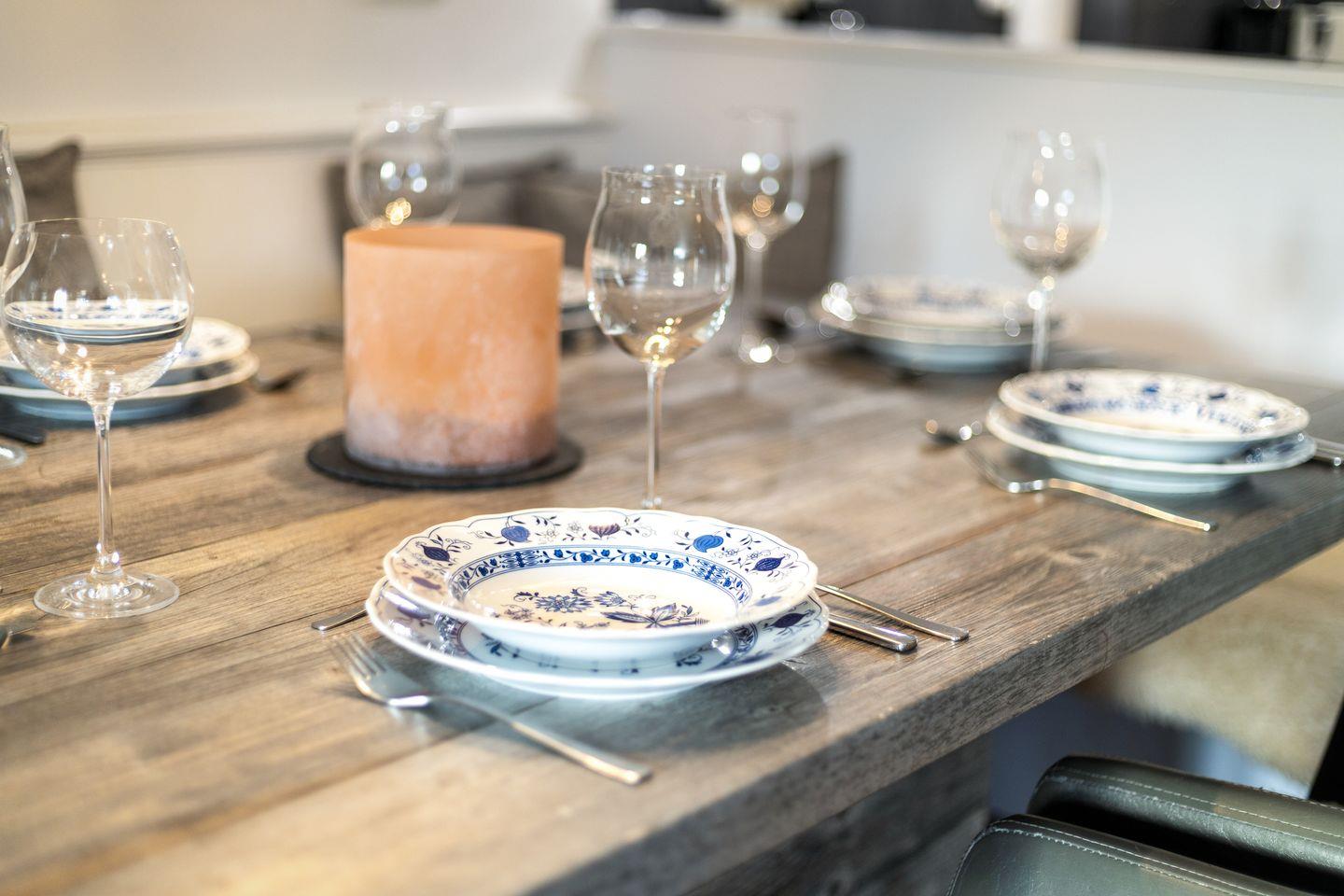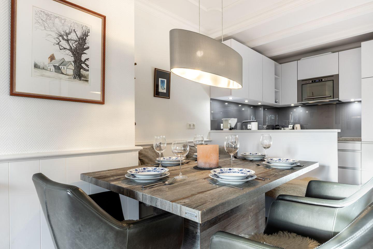 Die helle Einrichtung ist geschmackvoll aufeinander abgestimmt und kombiniert Tradition und Moderne. Aufwendige Tischlerarbeiten und hochwertiges Mobiliar runden das Gesamtbild ab. Das Objekt bietet Komfort wie Flat-TV, Internetradio DAB mit CD-Player, Telefon und WLAN, Cerankochfeld, Geschirrspüler, Mikrowelle, Backofen, Waschmaschine, Trockner, einen PKW-Stellplatz.