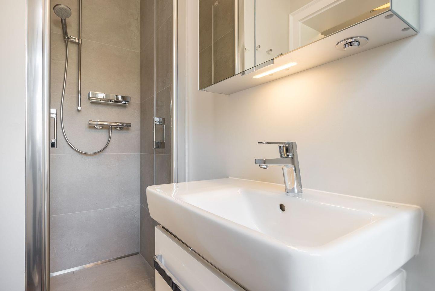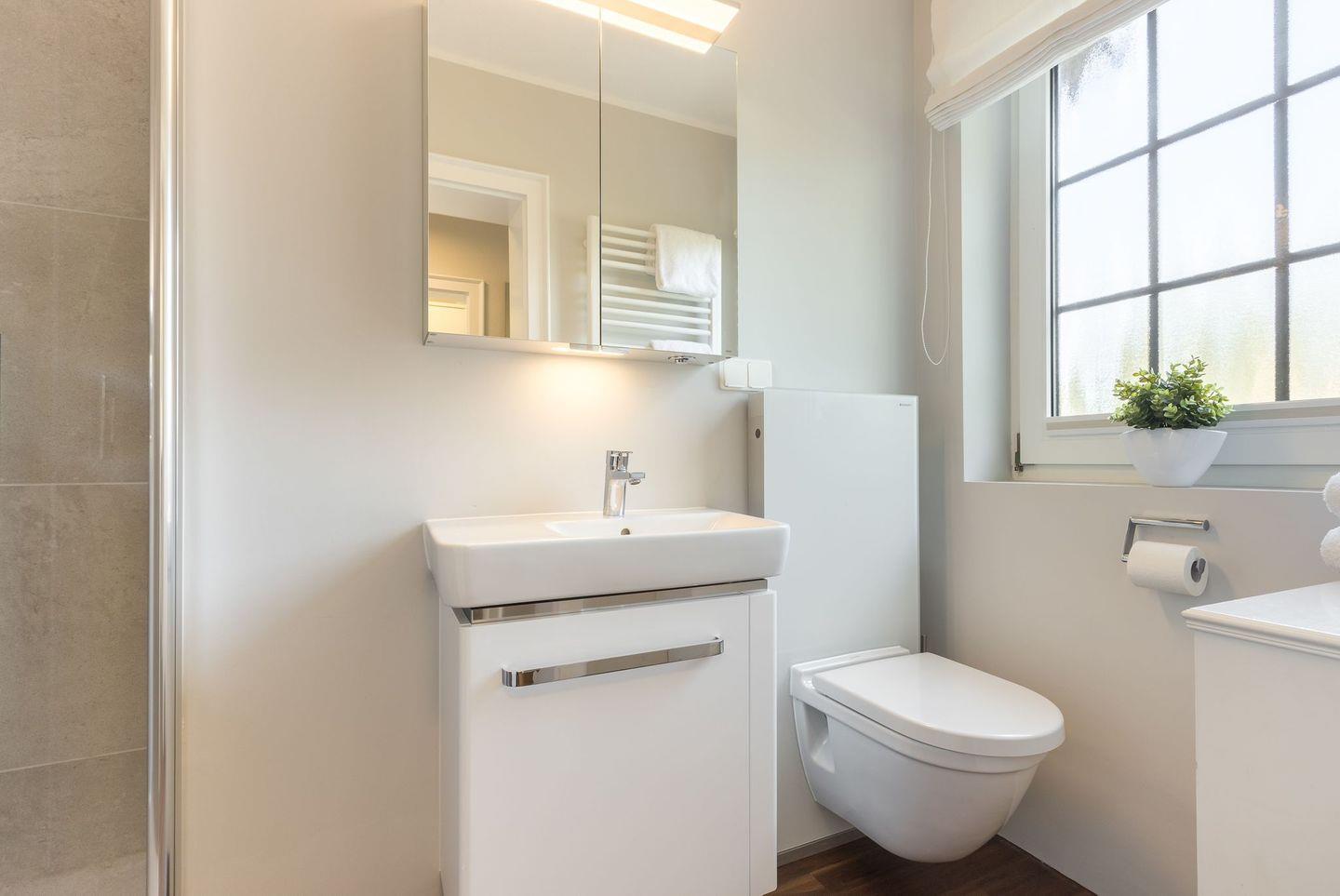 Bad: modernes, großes Duschbad mit Waschtrockner