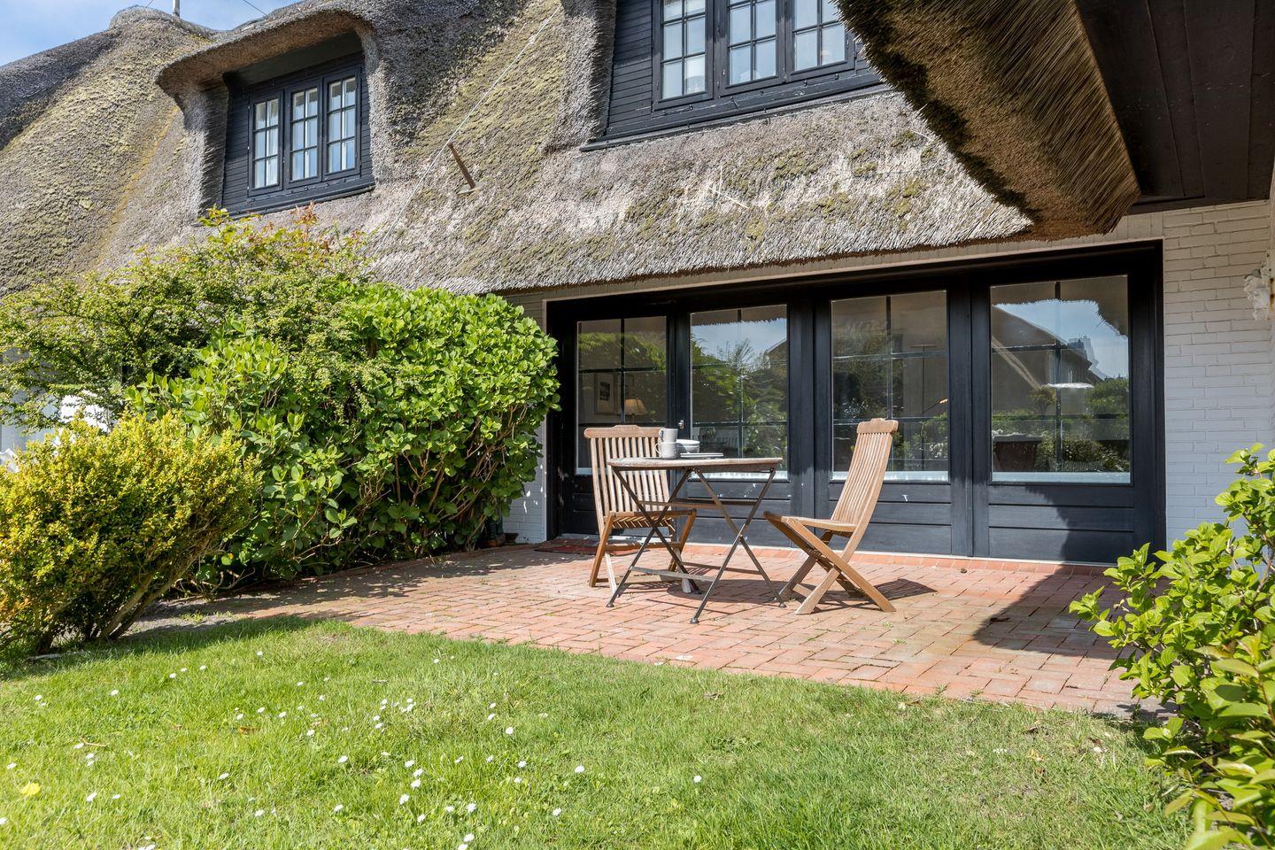 In einer reetgedeckten Wohnanlage in Südlage nahe dem Benen-Diken-Hotel.