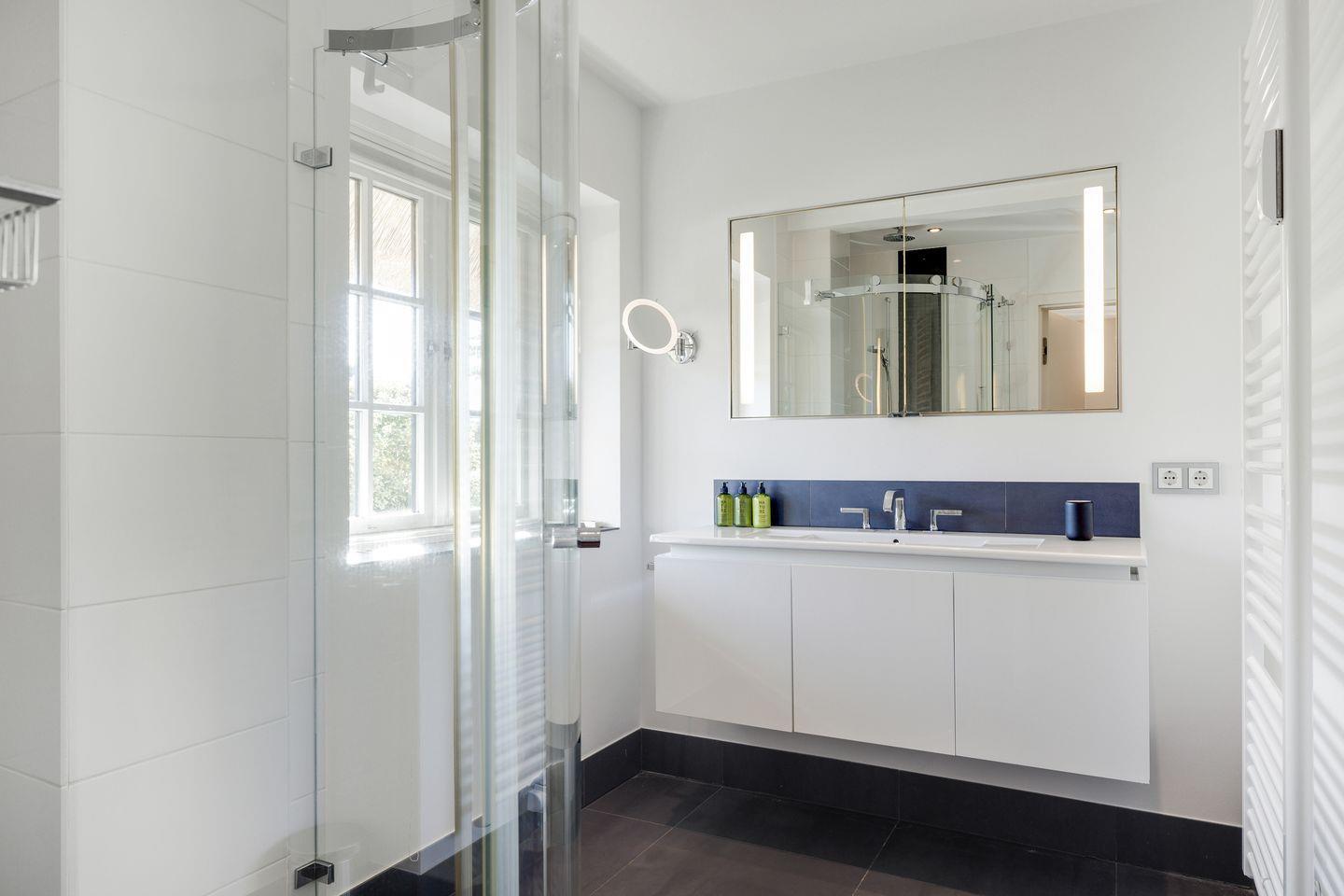 Badezimmer: Granit Bad mit ebenerdiger Dusche, elektrischem Handtuchhalter,
