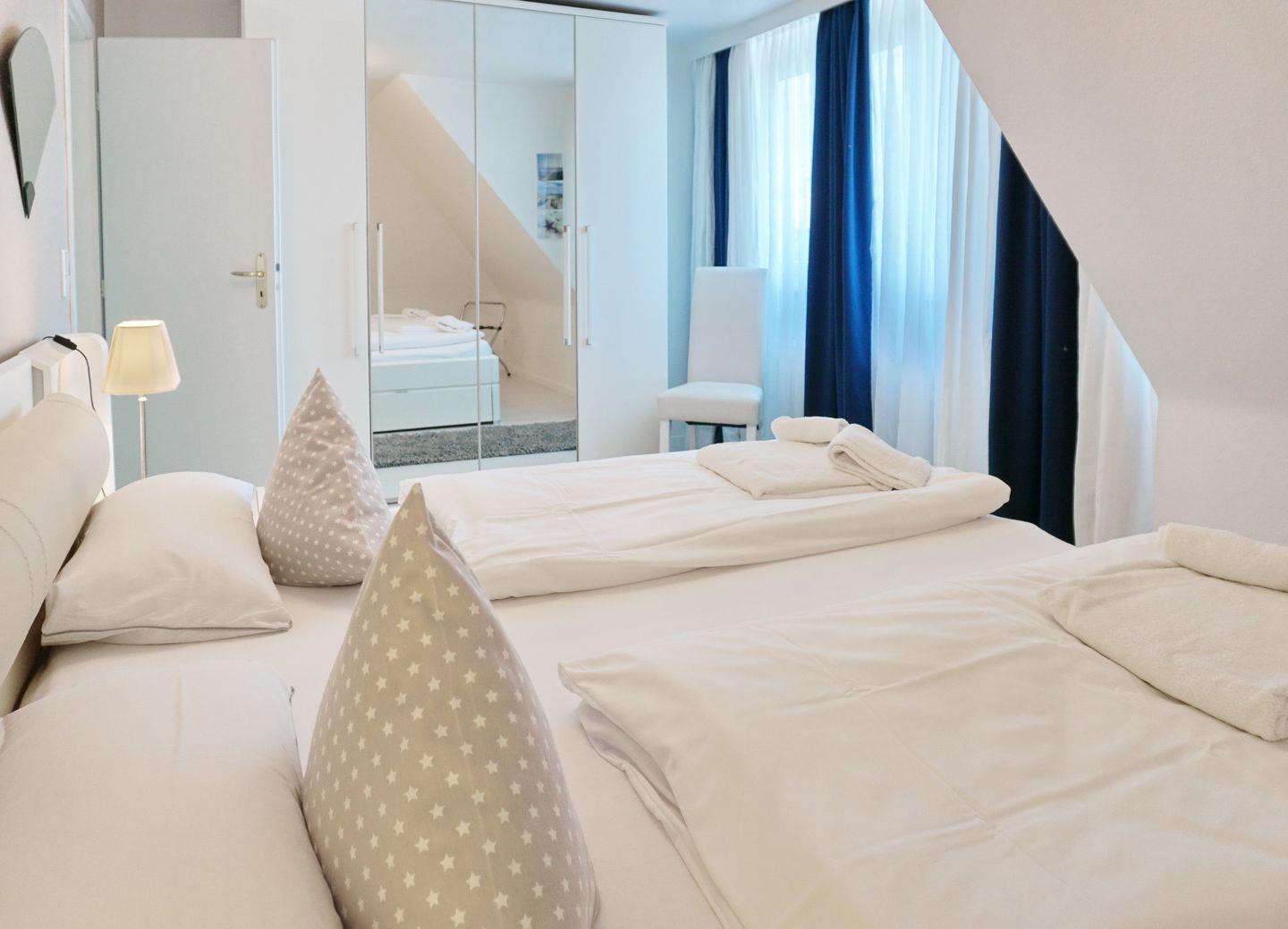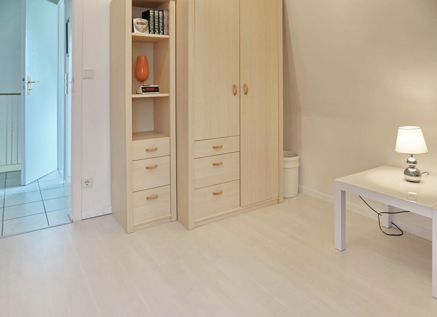 Schlafen 3: Schlafraum mit Schlafcouch, Schrank und Laminatboden