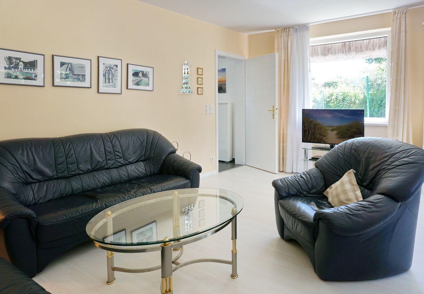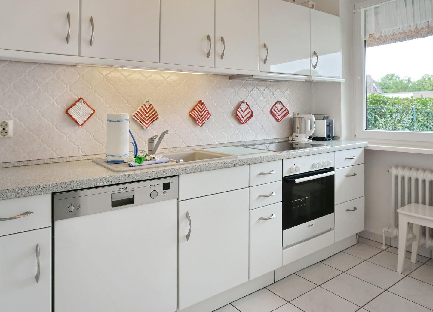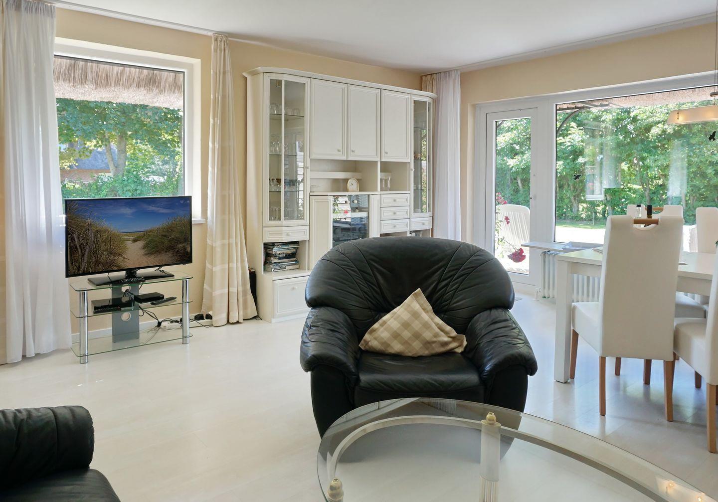 Das reetgedeckte, gepflegte Haus mit großem Garten liegt am Ende einer Sackgasse. Hier finden Sie Komfort wie Telefon, W-LAN, Sat-TV, DVD-Player, Stereoanlagen mit CD, Backofen, Geschirrspüler, Mikrowelle, Waschmaschine, Garagenabstellplatz für Fahrräder und zwei Pkw-Stellplätze.