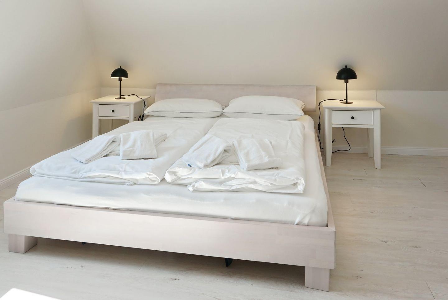 Schlafen 1: geräumiger Schlafraum mit Doppelbett (2 Matratzen, mit kleinem