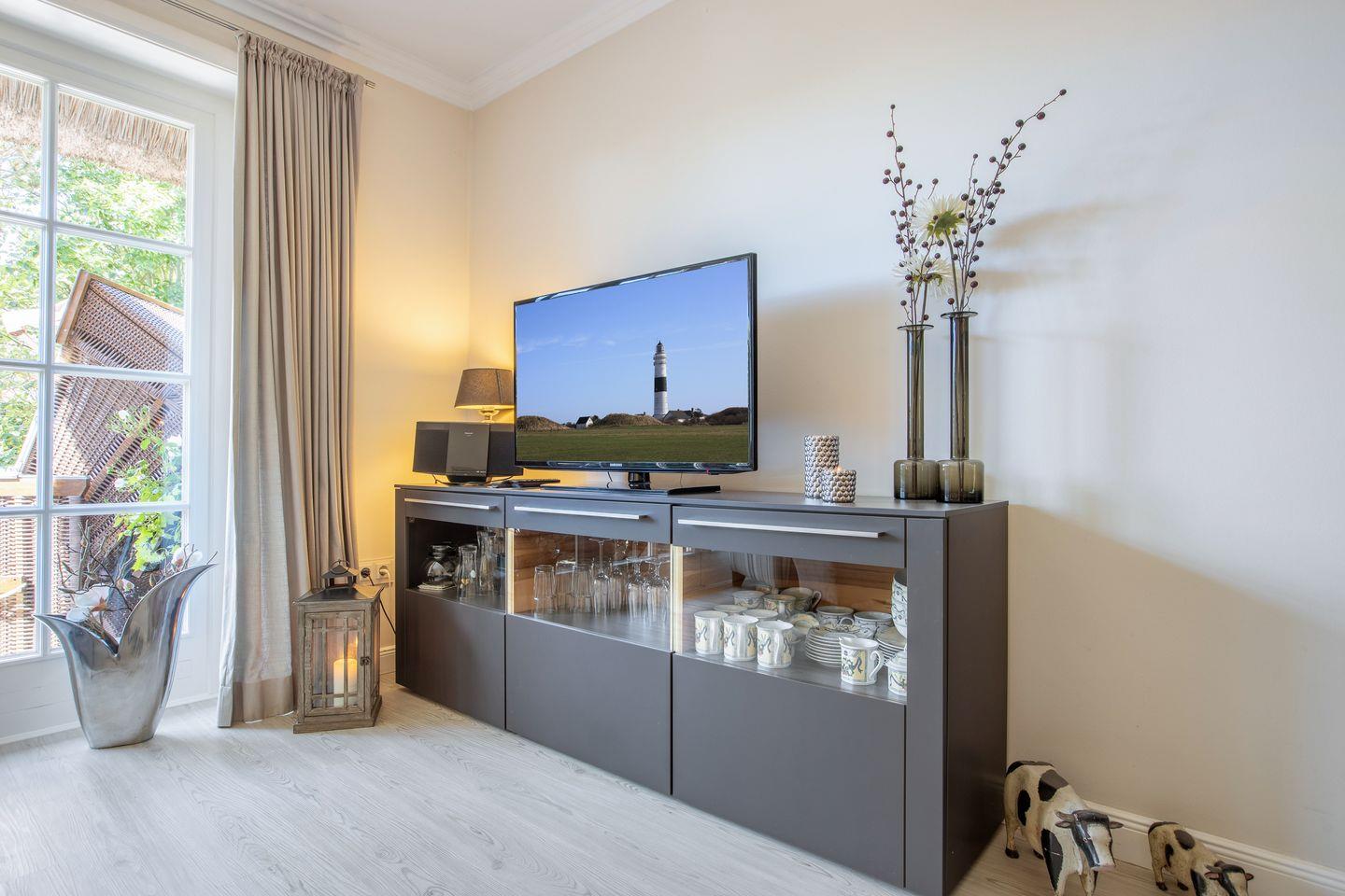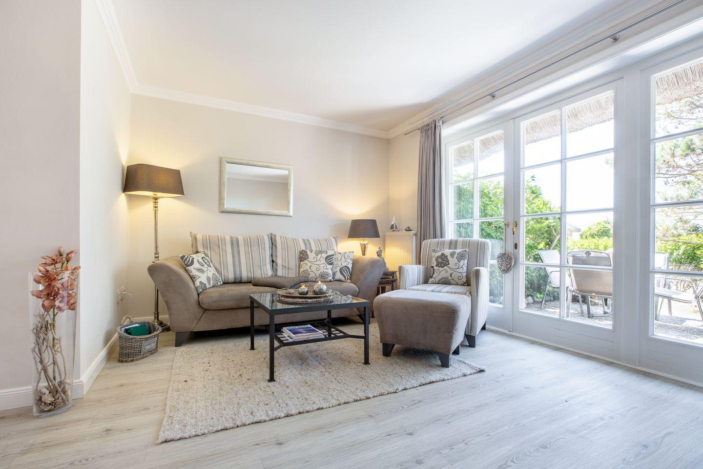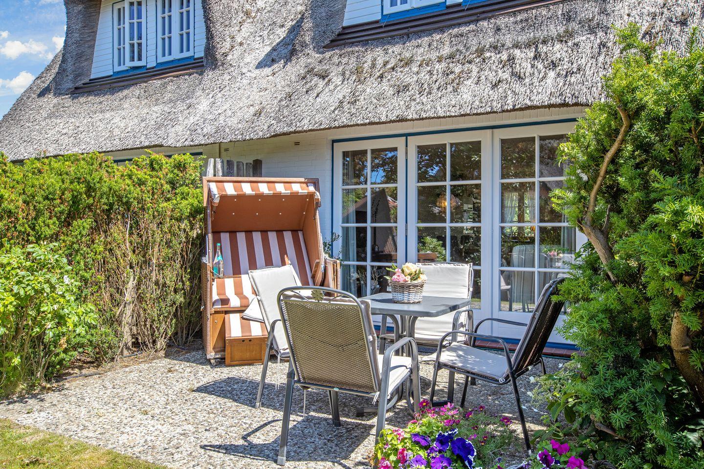 Modernes, reetgedecktes Ferienhaus in Keitum mit Terrasse, Gartenmöbeln und Privatparkplatz nahe Sylt-Strand.