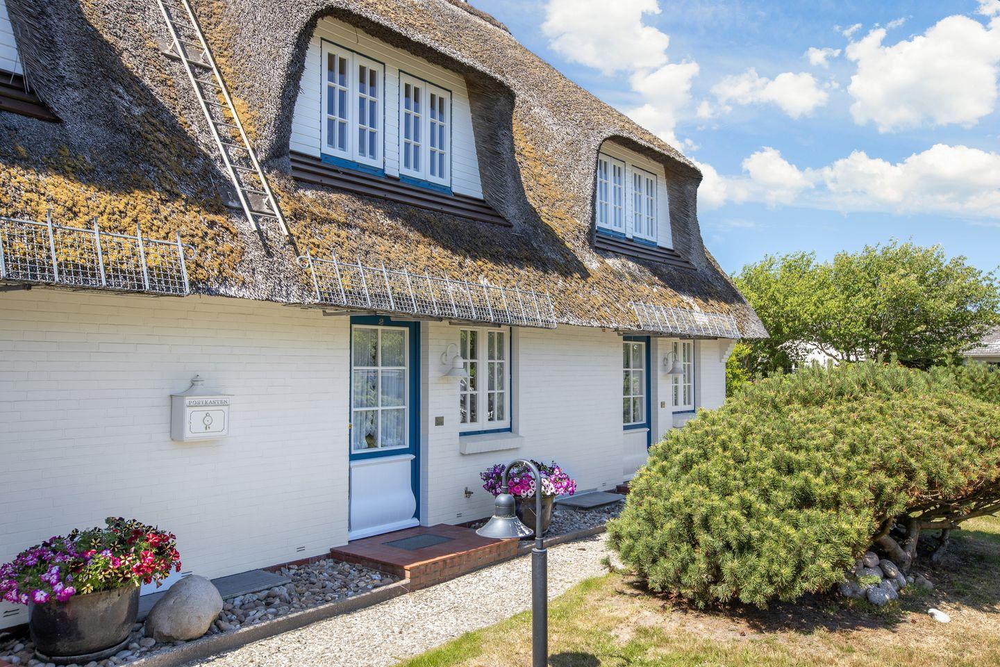 Das reetgedeckte Haus liegt im Süden von Keitum in Richtung Wiesen und Deich.