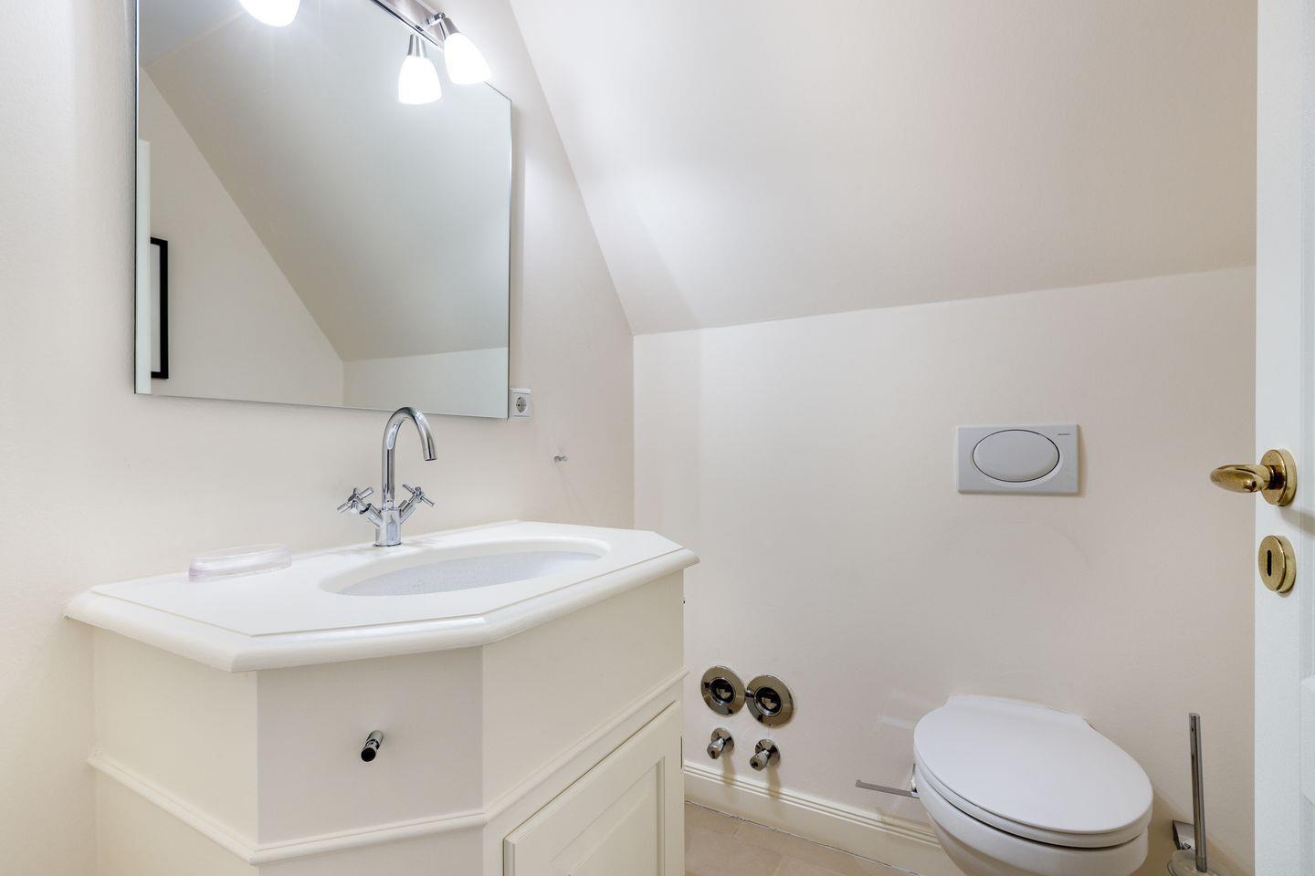 Separates WC: kleines WC mit Einzelwaschtisch und Spiegel
