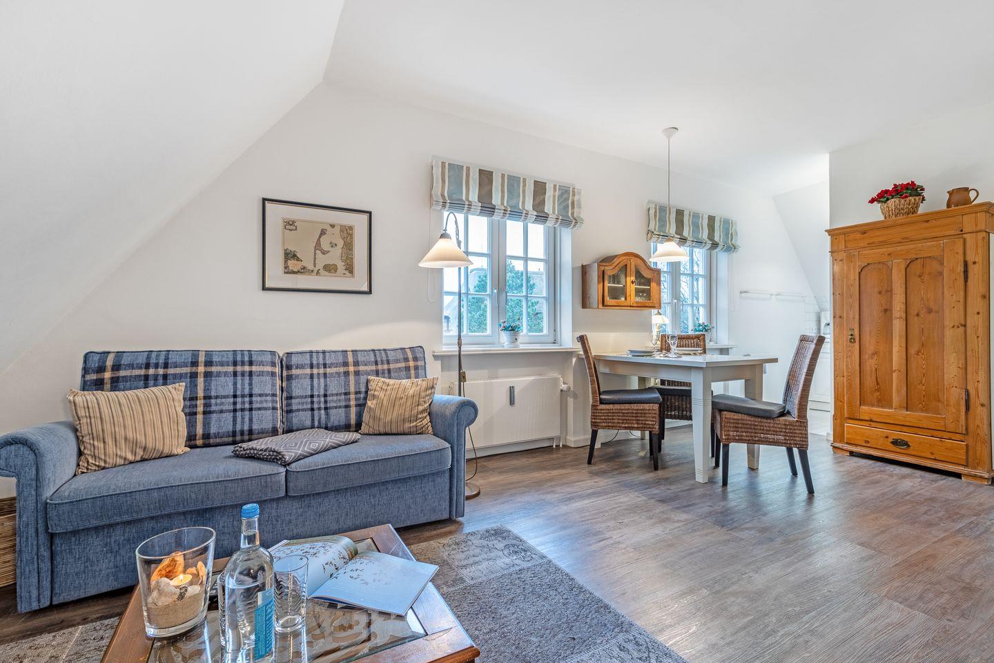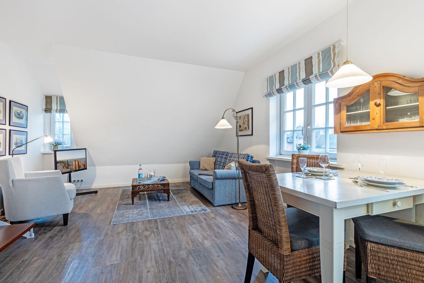 Gemütliche Ferienwohnung Süder Ech in Keitum, nahe Nordsee, mit Garten und Strandkorb – ideal für erholsame Tage zu zweit.