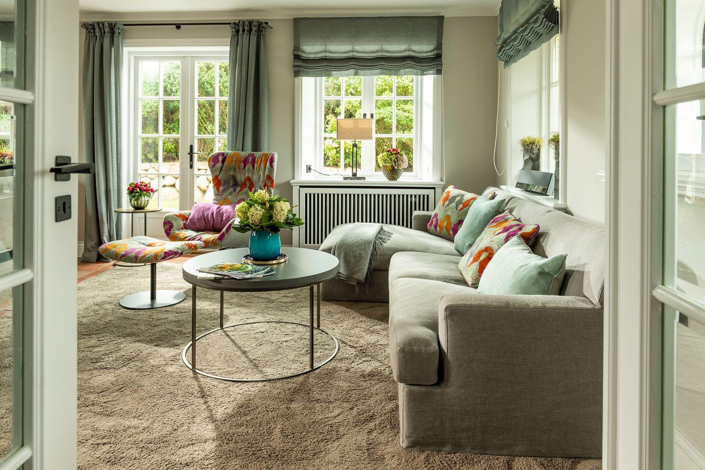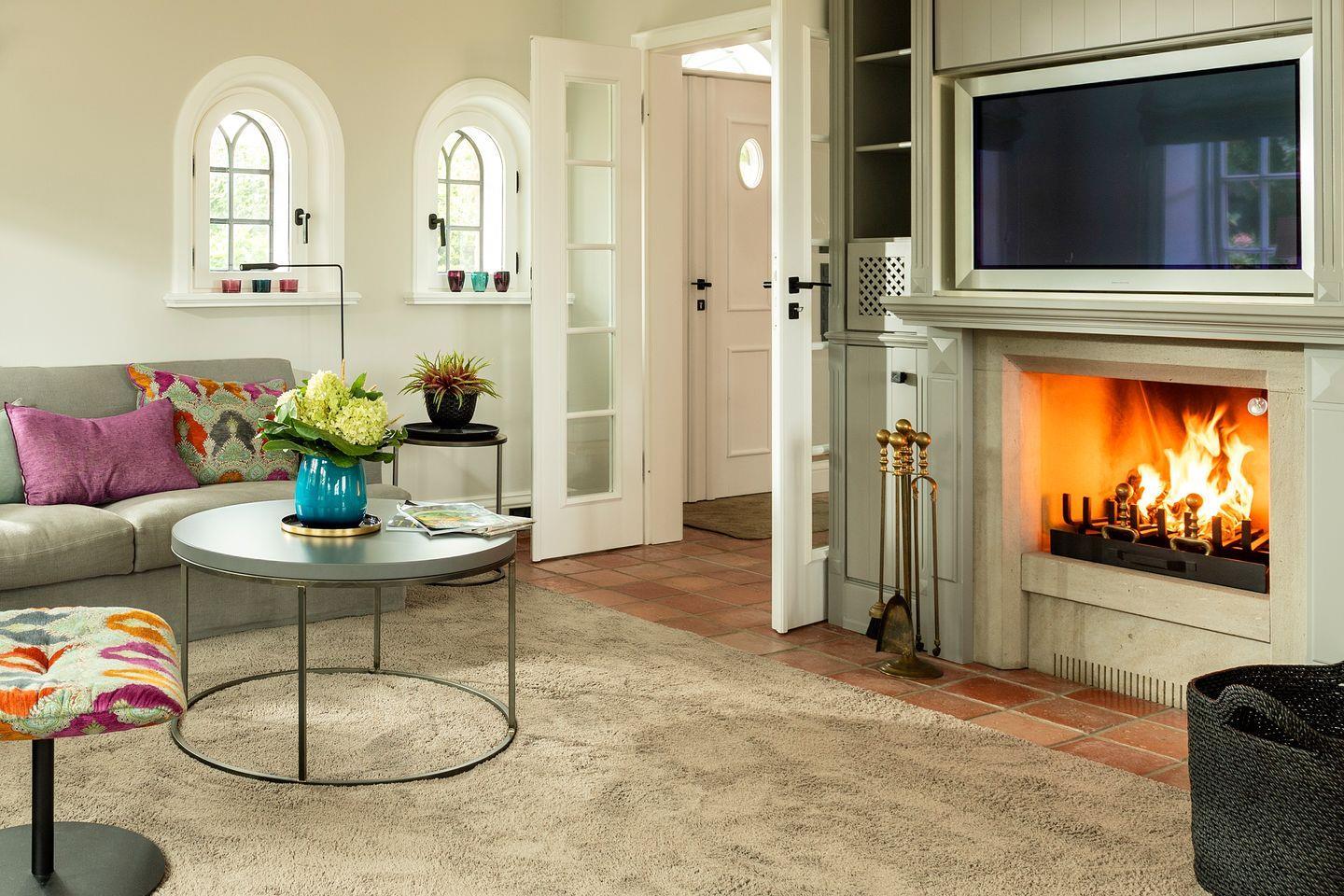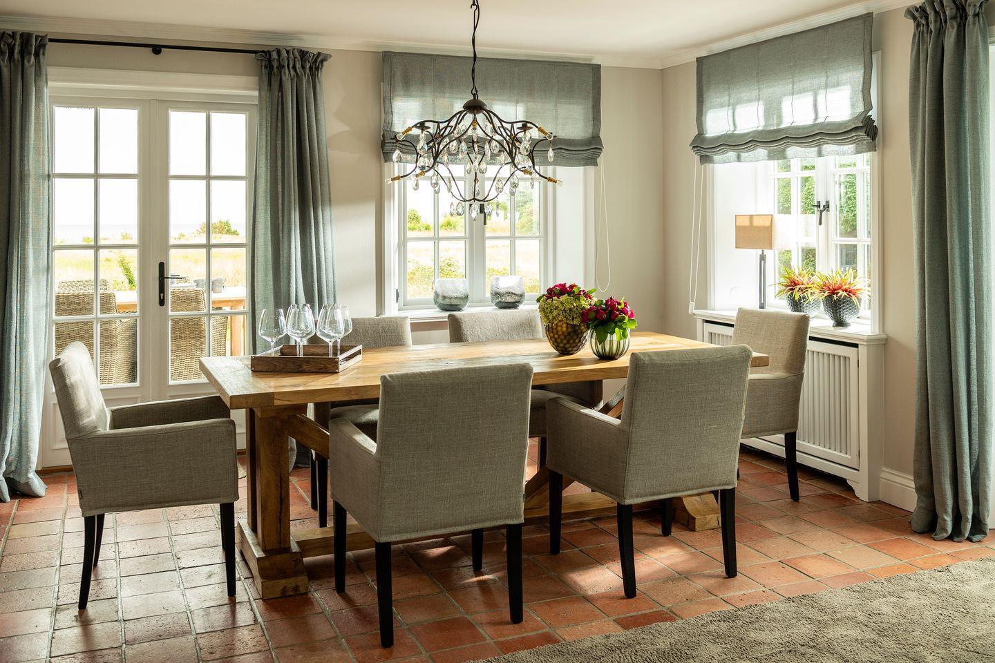 Das Herzstück des Hauses ist der moderne, helle Wohnbereich, der sehr geschmackvoll eingerichtet ist. Von der Couchecke schauen Sie auf den flackernden Kamin und der große Essbereich bietet Ihnen Platz für bis zu sechs Personen. Die Küche ist mit allem ausgestattet, was Sie im Urlaub benötigen. Auf gleicher Ebene finden Sie außerdem ein Gäste-WC.
