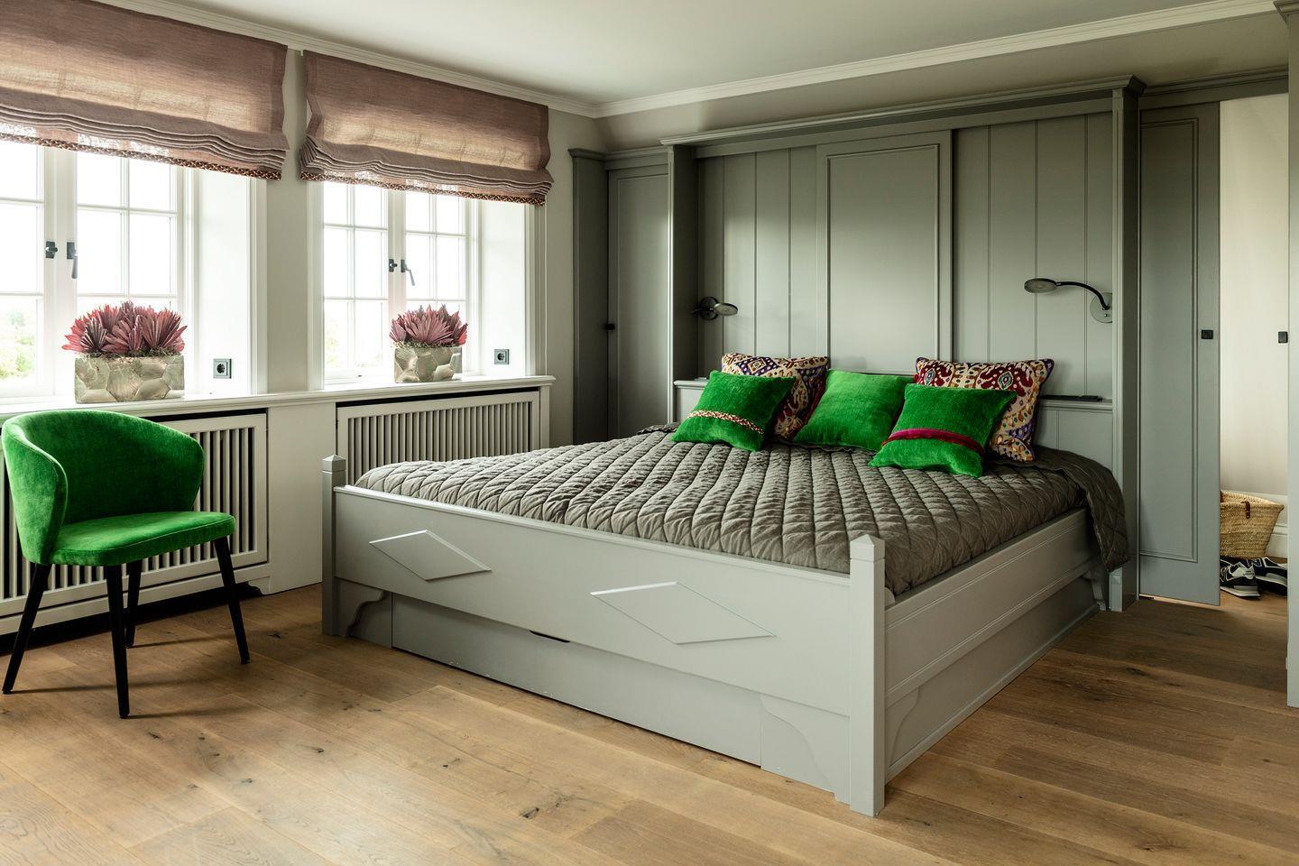 Im Obergeschoss des Hauses empfängt Sie ein großer Schlafraum mit hochwertigem Einbaubett und begehbarem Kleiderschrank sowie einem Schreibtisch, von dem aus Sie auf das Sylter Watt blicken können. Auf gleicher Ebene finden Sie ein luxuriöses Badezimmer mit Dusche und WC. Noch eine Etage weiter oben finden Sie einen weiteren Raum mit zwei Einzelbetten und Flatscreen-TV.