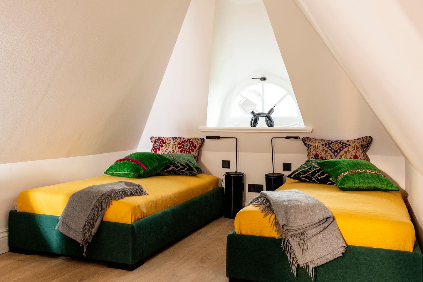 Im Untergeschoss des Hauses verbirgt sich ein weiterer Raum mit Doppelbett, Flatscreen-TV und Schreibtisch sowie ein traumhaftes Badezimmer, das man eher schon als Wellnessbereich bezeichnen kann. Entspannen Sie in Ihrer privaten Sauna oder relaxen Sie mit einem guten Buch in dem „Einbaubett“ nachdem Sie ein Bad in Ihrer freistehenden Badewanne genommen haben.