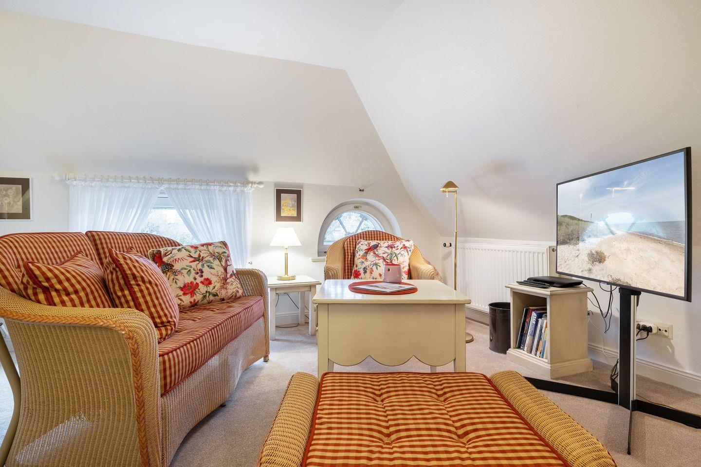 Die Wohnung liegt im Dachgeschoss eines alten Kapitänshaus in Keitum. Mit den 34qm Nutzfläche und dem kombinierten Wohn- und Schlafraum ist sie eine kleine Perle für entspannte Tage auf der Insel Sylt. Die Ausstattung vermittelt eine Gemütlichkeit, ohne dabei den ursprünglich Flair des Hauses zu verlieren. Im Garten haben Sie einen schönen Terrassenplatz mit Strandkorb , wo es sich wunderbar verweilen lässt. Zur Wohnung gehören auch 2 Parkplätze, so dass genügend Platz für Ihr Fahrzeug ist. Haustiere sind in diesem Objekt nicht erlaubt und das Rauchen im Domizil nicht erwünscht.