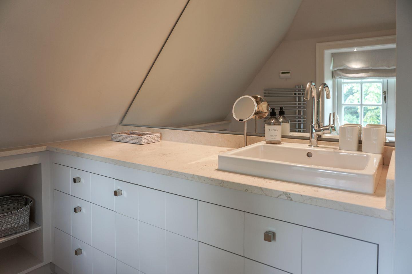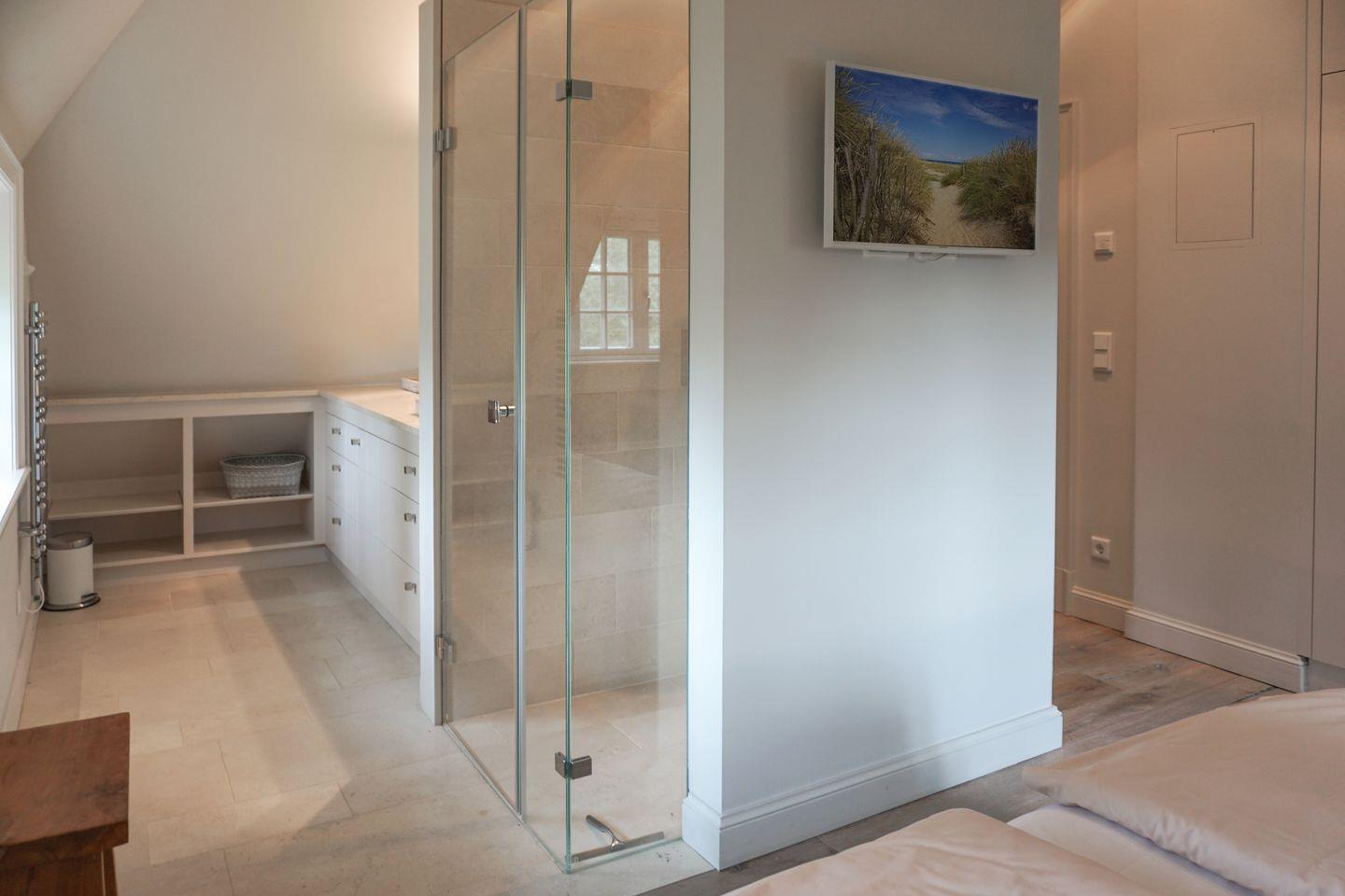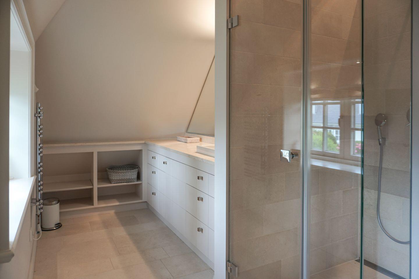 Das Haus bietet drei moderne Badezimmer, die jeweils über eine bodengleiche Dusche verfügen. Zusätzlich gibt es zwei Gäste-WCs. Für Komfort sorgen eine Badewanne und eine Sauna zur Eigennutzung, die entspannende Stunden verspricht. Die Bäder sind teilweise mit Kosmetikspiegel, Ganzkörperspiegel ausgestattet. Handtücher, Bettwäsche, eine Erstausstattung an Badausstattung sowie Geschirrhandtücher werden bereitgestellt.