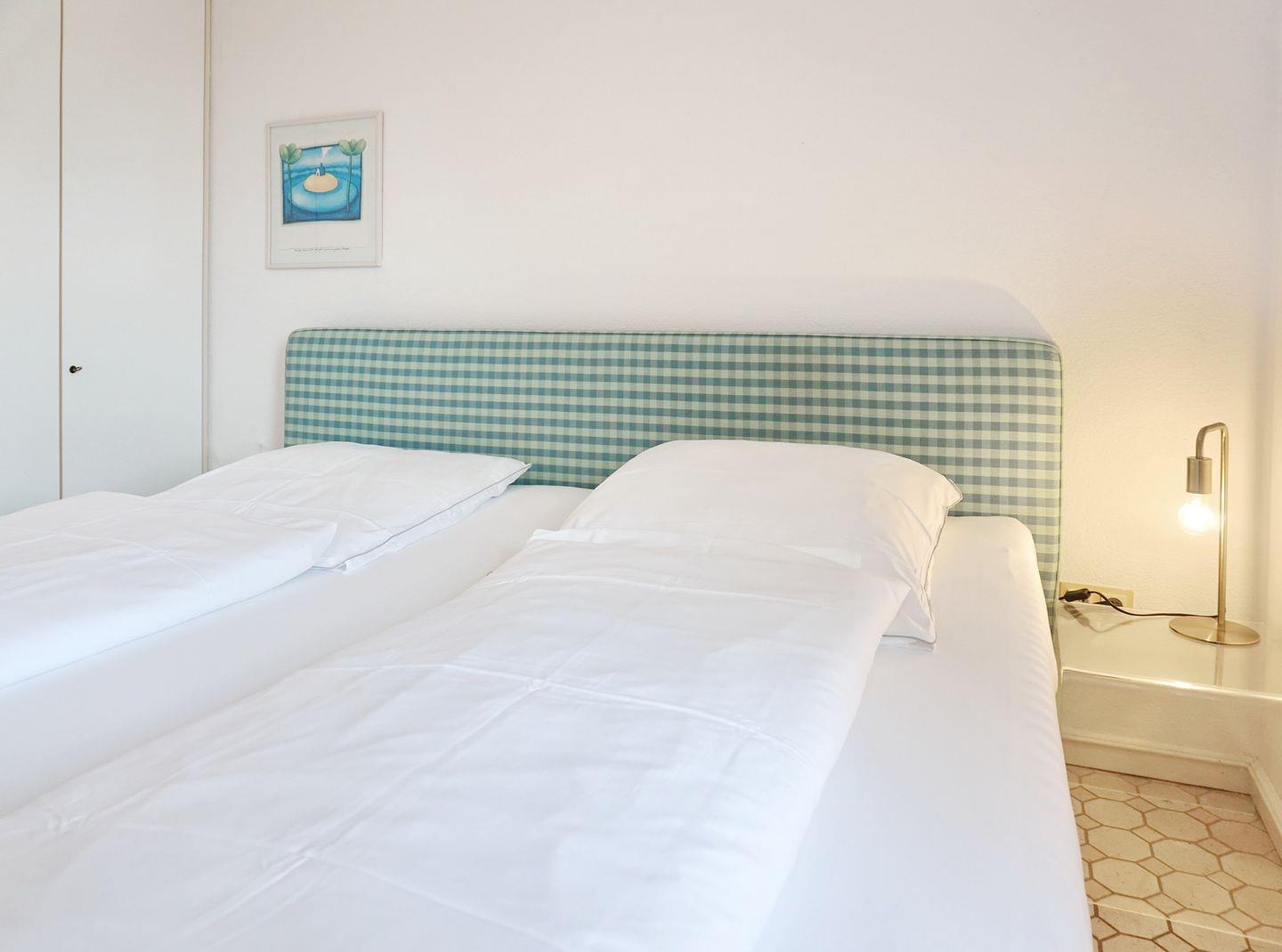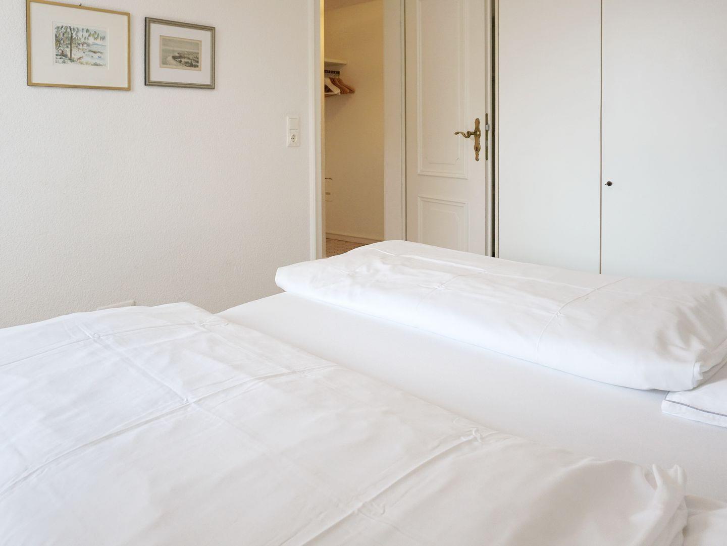 Schlafen: Schlafraum mit 2 zusammen stehenden Einzelbetten und eingebauten Kleiderschrank
