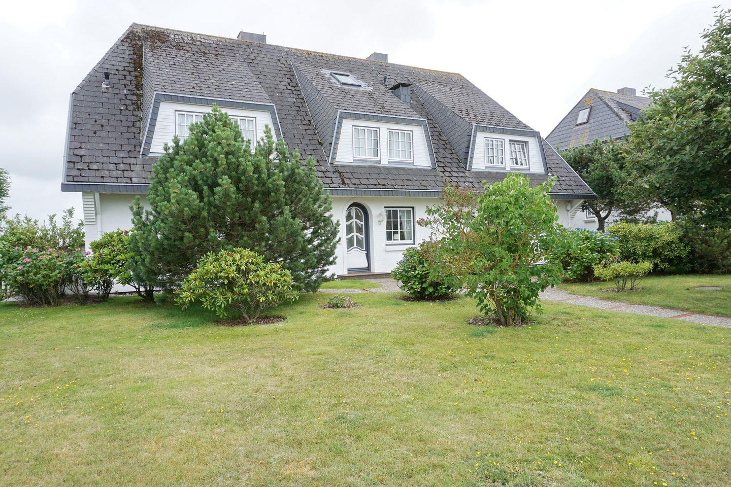 Das hartgedeckte, gepflegte Haus mit sechs Einheiten liegt mit freiem Blick über die Heide zum Wattenmeer bis nach Keitum.