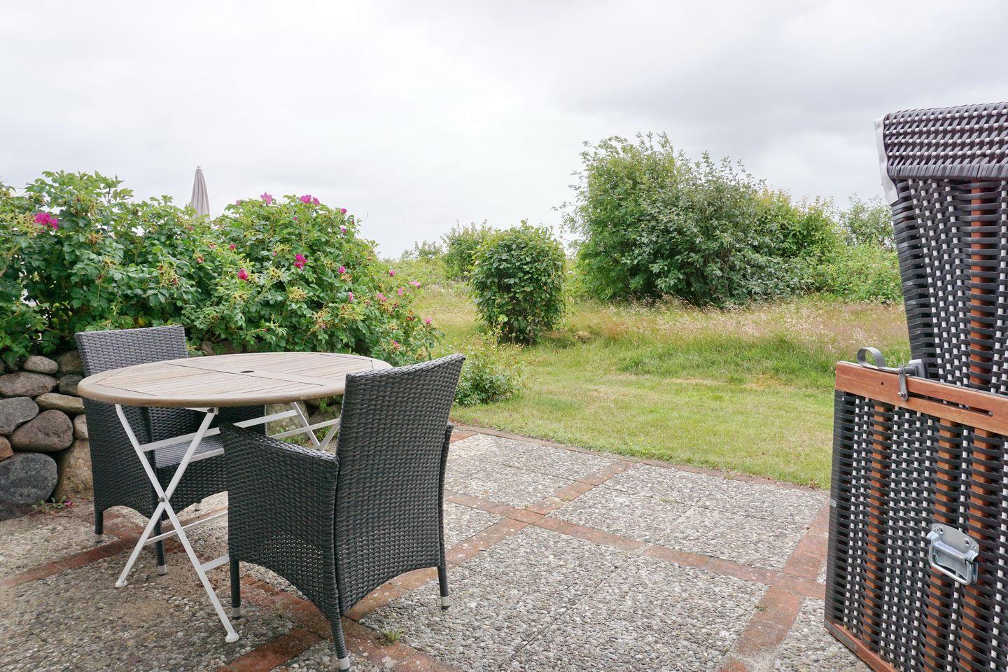 Terrasse: mit Strandkorb zum Süden ( ca. April - Oktober )