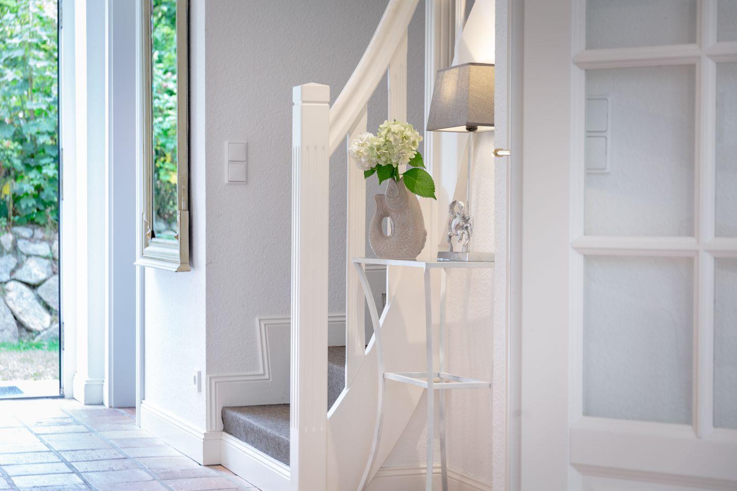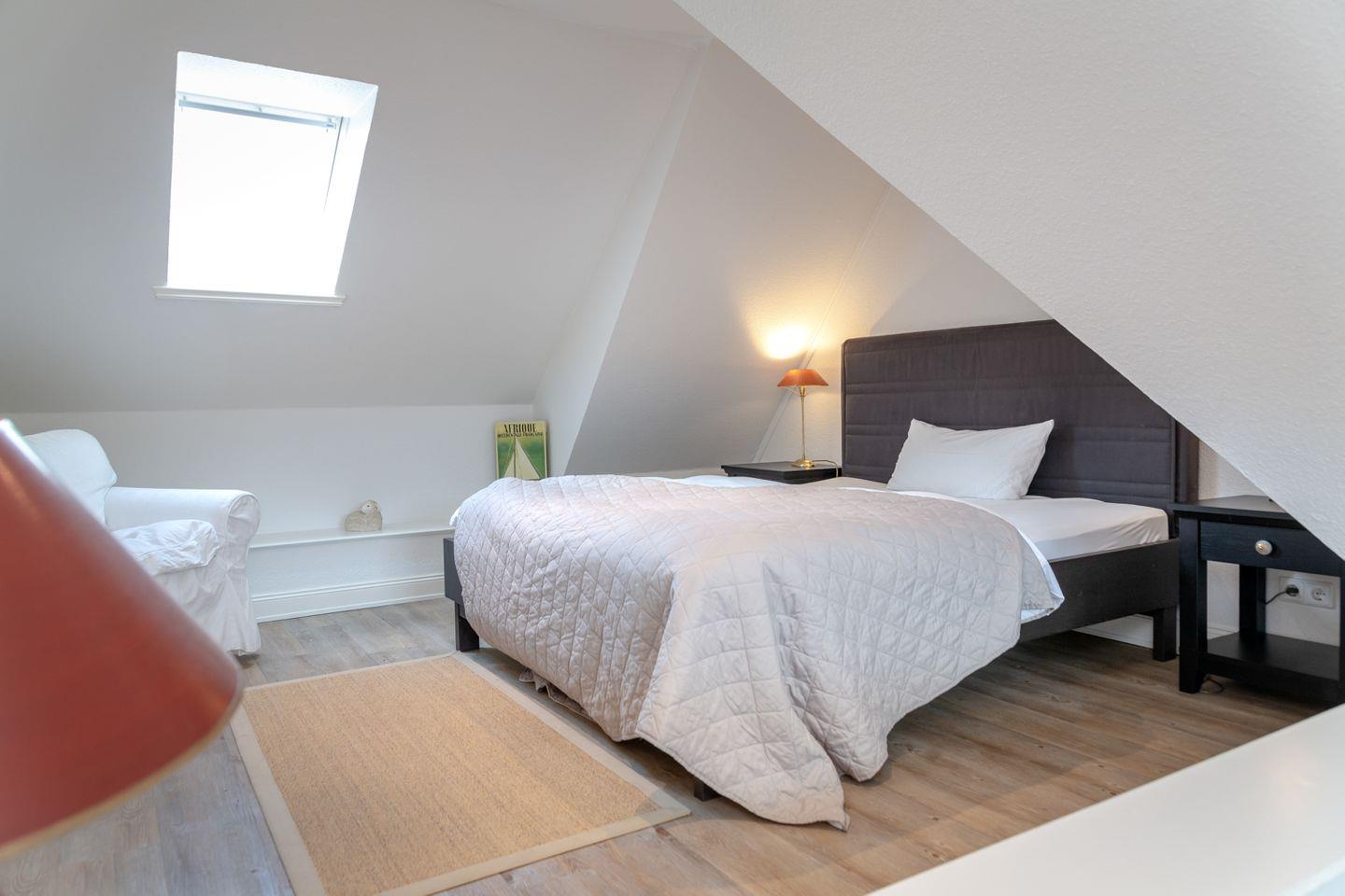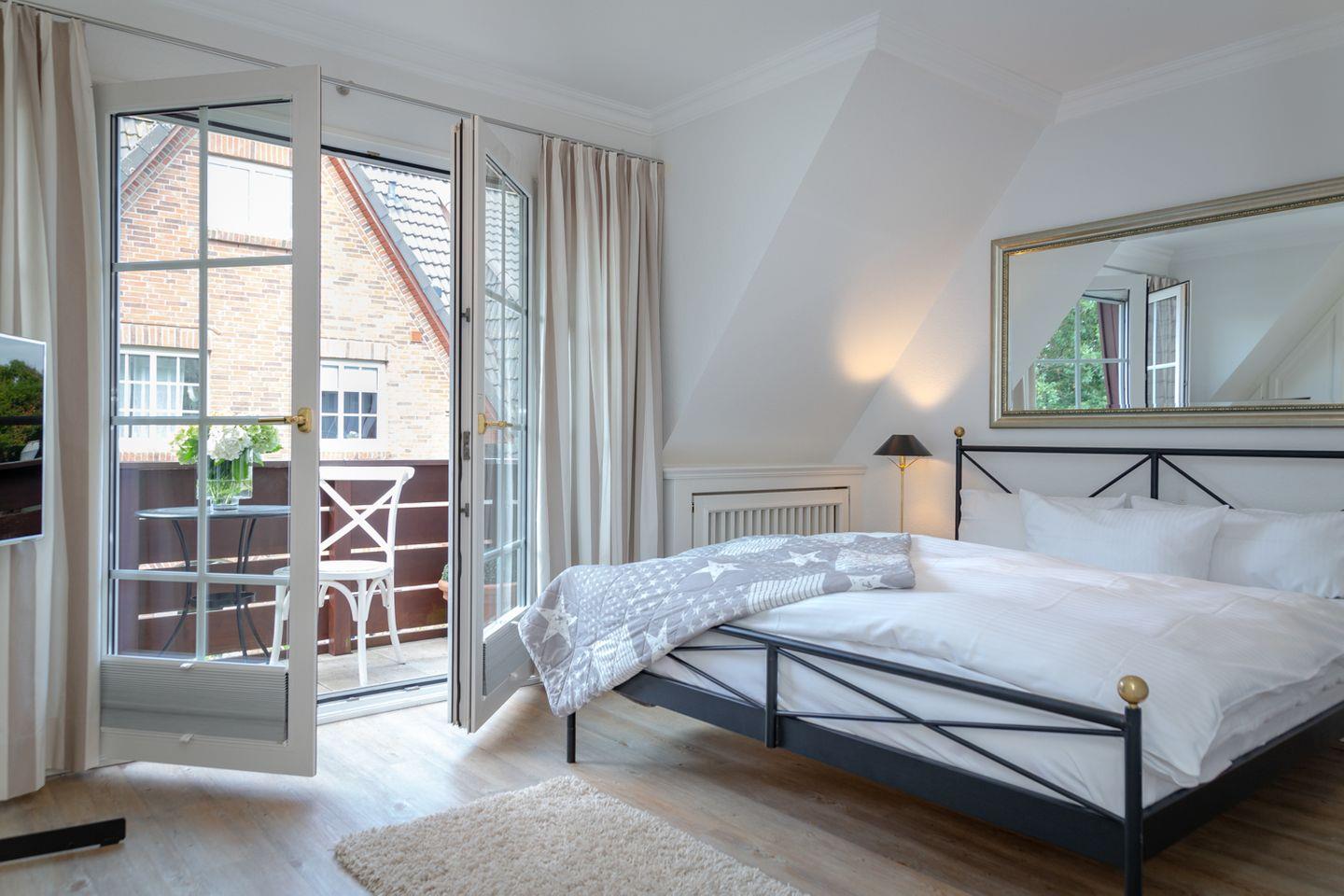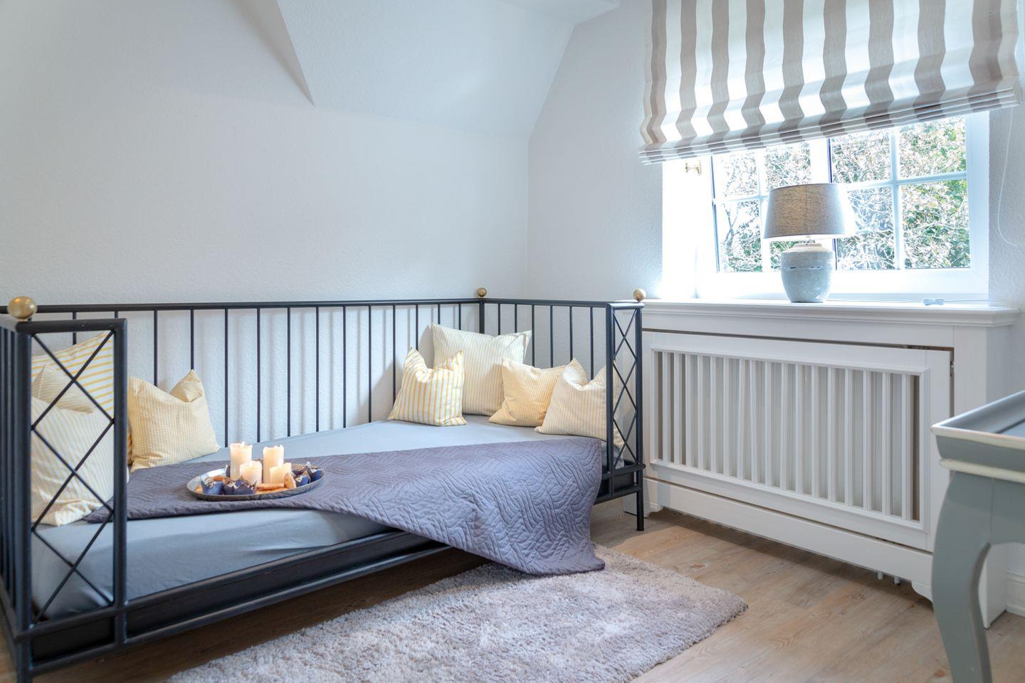 Die private Terrasse im Erdgeschoss ist nach Westen ausgerichtet und bietet die perfekte Kulisse, um Ihre Sonnenstunden im Strandkorb zu genießen. Die Schlafzimmer befinden sich auf der oberen Ebene, wobei zwei von ihnen mit komfortablen Doppelbetten ausgestattet sind und das dritte über ein bequemes Einzelbett verfügt. Ein Schlafzimmer bietet Ihnen zudem Zugang zu einem Balkon, auf dem Sie den Tag entspannt ausklingen lassen können.