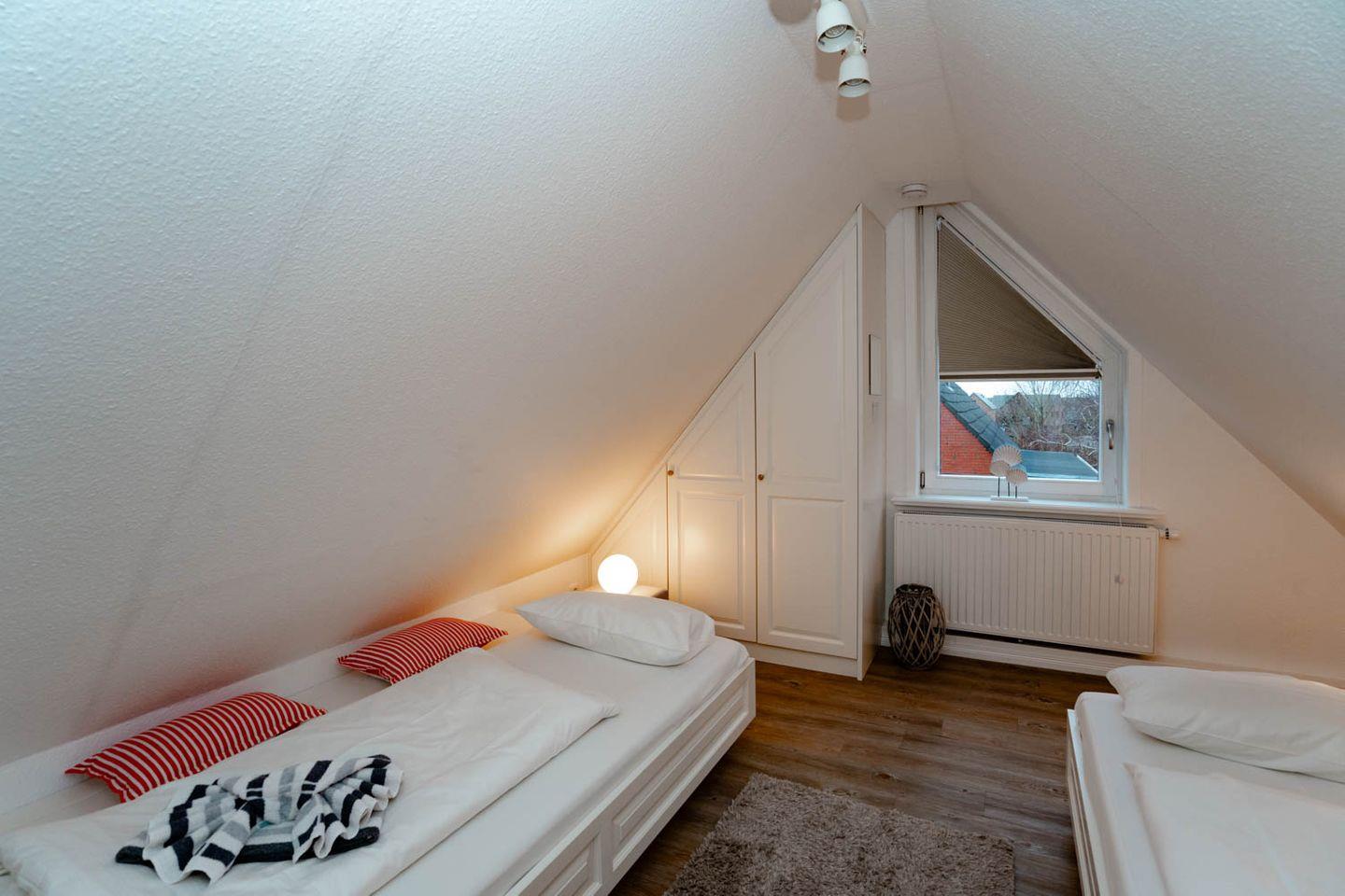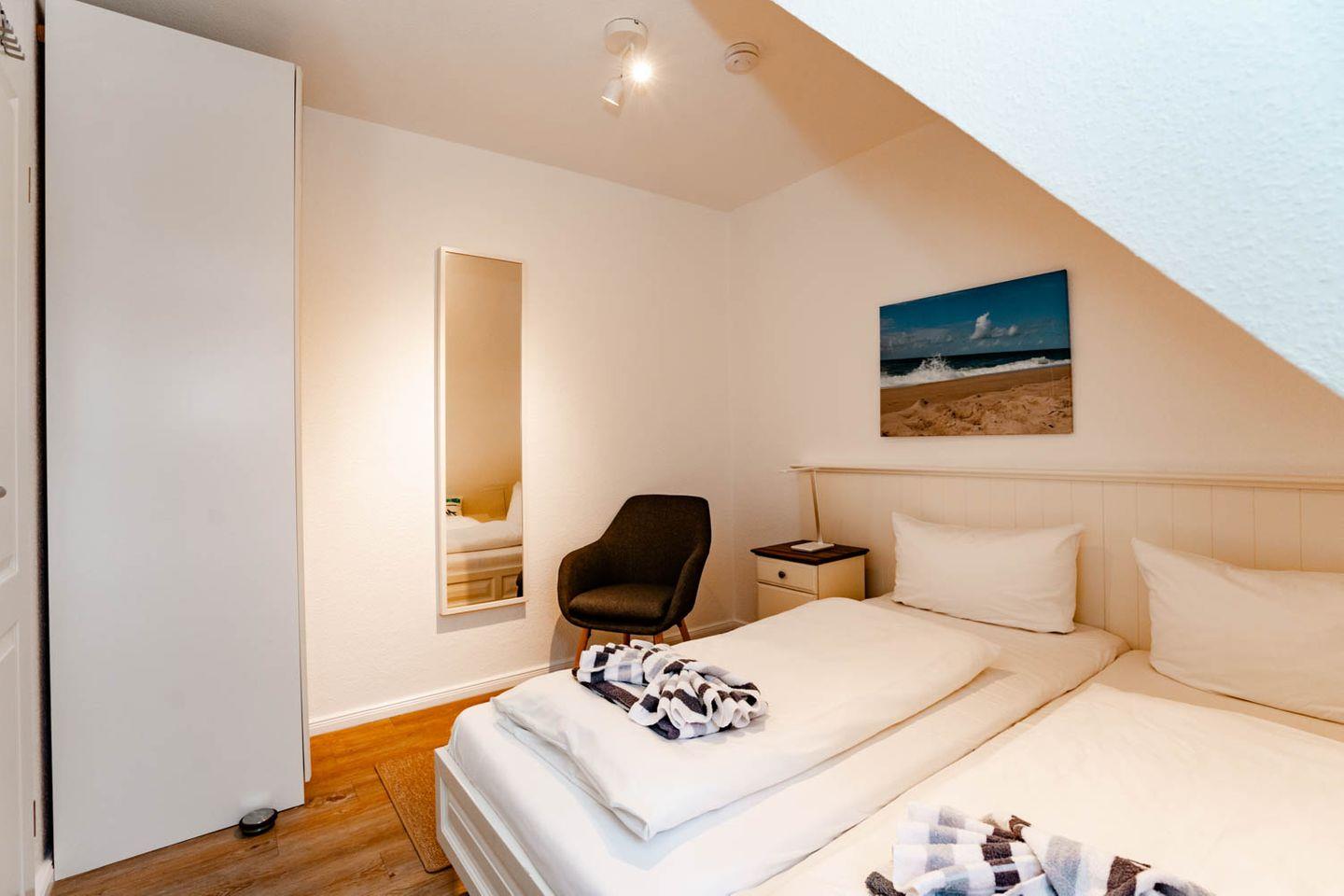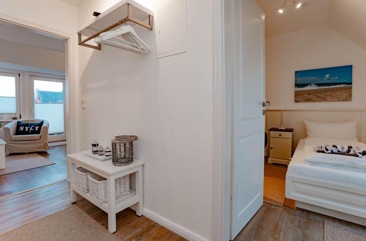 Moin und herzlich willkommen im dörflichen Tinnum. Diese Ferienwohnung ist genauso schön wie ihr Name: "Herzmuschel", heißt das 3-Zimmer-Ferienappartement, das Platz für bis zu vier Personen bietet, sich sehr charmant über zwei Ebenen zieht und zwei Schlafzimmer hat - eines mit zwei Einzelbetten, eines mit einem 1,80er Doppelbett. Das Wohnzimmer schließt an eine offene Küche an, die alles hat, was die kochende Leidenschaft braucht. Ein Ostbalkon macht nicht nur zum Sonnenaufgang Freude und sogar fürs Auto ist gesorgt ein komfortabler Außenparkplatz gehört ebenfalls dazu. Diese attraktive Ferienwohnung besticht aber vor allem auch durch ihre reduzierte, klare Einrichtung und durch ihr herrlich lichtes Flair. Viel Weiß und die warmen Akzente des Holzdielenfußbodens sorgen sogar im Herbst und Winter für einen Hauch von nordfriesischer Sommerfrische. Und die Lage? Auf der Insel sehr zentral, in Tinnum dörflich ruhig, mit Blickrichtung zur Insel linksseitig der Bahn. Die Wohnung liegt keine zwei Kilometer von der "Hauptstadt" Westerland entfernt und bis zum Bäcker ist es nur ein kurzer Fußweg.