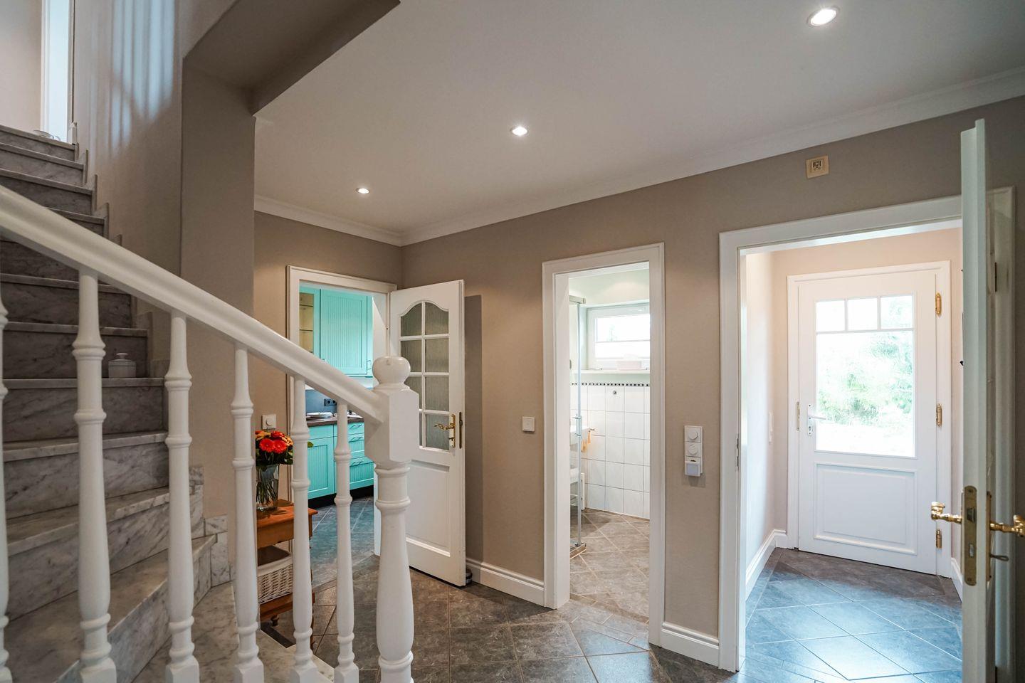 Herzlich willkommen im Ferienhaus „Oene“ in Tinnum! Dieser Hausteil für bis zu 5 Personen liegt in der Nähe der Tinnumer Salzwiesen,das Rantumbecken und der Strand der „Oase zur Sonne“ sind ebenfalls leicht erreichbar. Das Haus ist klar und komfortabel eingerichtet, mit Fliesen im Erdgeschoss und einem gemütlichen Kaminofen. Ein großer Garten mit Rutsche und Schaukel erfreut Kinder und Hundebesitzer, inklusive kleinem Kräutergarten. Im Obergeschoss erwarten Sie 3 Schlafzimmer und 2 Duschbäder.