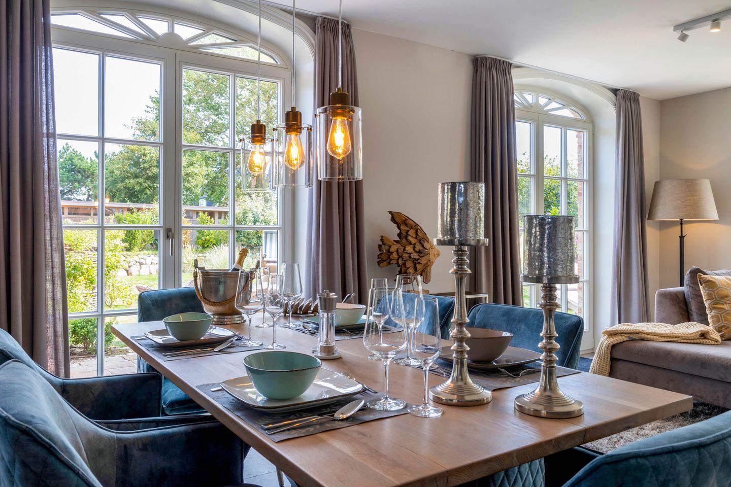 Moin und herzlich Willkommen im Ferienhaus „Sylter Liebe“, einem Neu erbauten wunderschönen exklusiven Anwesen mit Einzelhaus-Charakter am Rande des Dorfes Tinnum. Die Lage ist vielleicht eine der meist unterschätzten der Insel, Sie sollten also nach Ihrem Urlaub bitte nicht zur laut von der „Sylter Liebe“ schwärmen, damit es hier so beschaulich syltig bleibt, wie es ist: Hier, am Rande der weitläufigen Wiesen können sich bis zu sechs Personen zurückziehen und wirklich zur Ruhe kommen, mit einem schönen Garten, einer großzügigen Terrasse, ihrem eigenen Strandkorb und einem Haus, das sehr viel Charme hat und nicht nur mit einem Kamin, sondern mit wirklich allem ausgestattet ist, was auch das anspruchsvollere Urlauberherz begehrt. Sogar ein Wäschetrockner, ein Tresor sowie ein Bügeleisen finden sich. Zwei Einzelbetten und zwei Doppelbetten, zwei Bäder und eine edle offene Küche – das Ferienhaus ist hell und mit viel Liebe zum Detail eingerichtet, frisches Türkis setzt sparsame Akzente zu edlem Greige und den nordischen Holzdielen. Manchmal hört man hier in der Ferne noch ein Pferd wiehern, der Deich vom Watt ist nicht weit, das offene Meer und die „Oase zur Sonne“ keine zwei Kilometer entfernt. Hier „in den Wiesen“ und in der „Sylter Liebe“ sind Inselferien wirklich etwas sehr Besonderes, nicht nur für Individualisten.