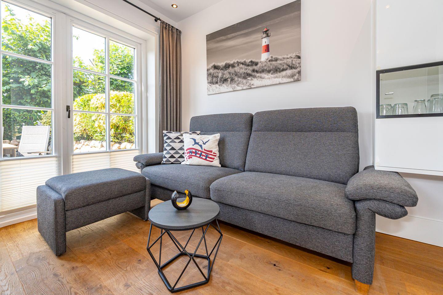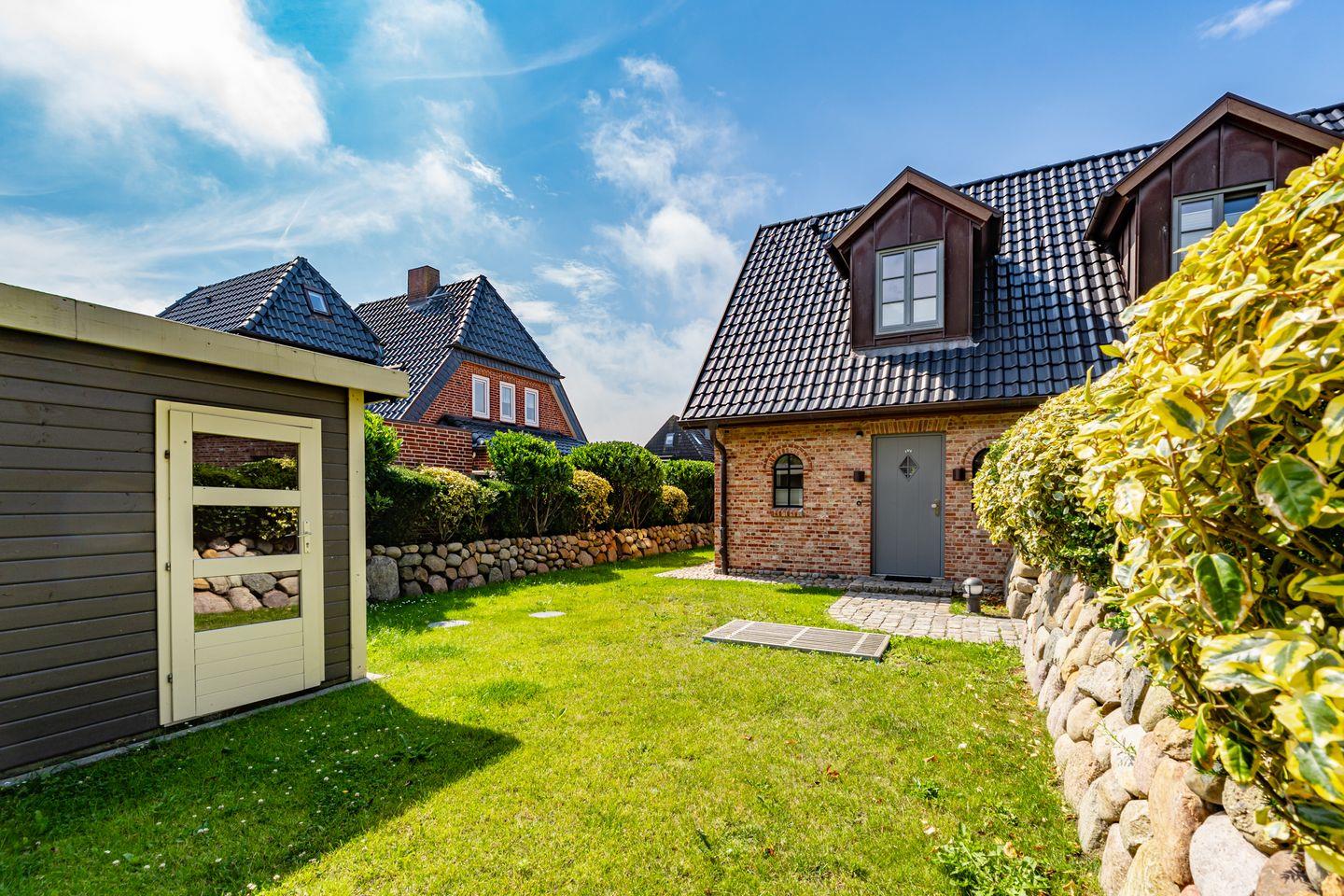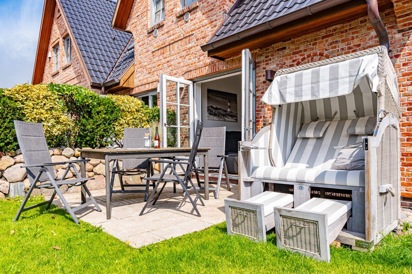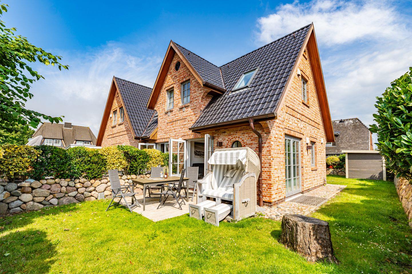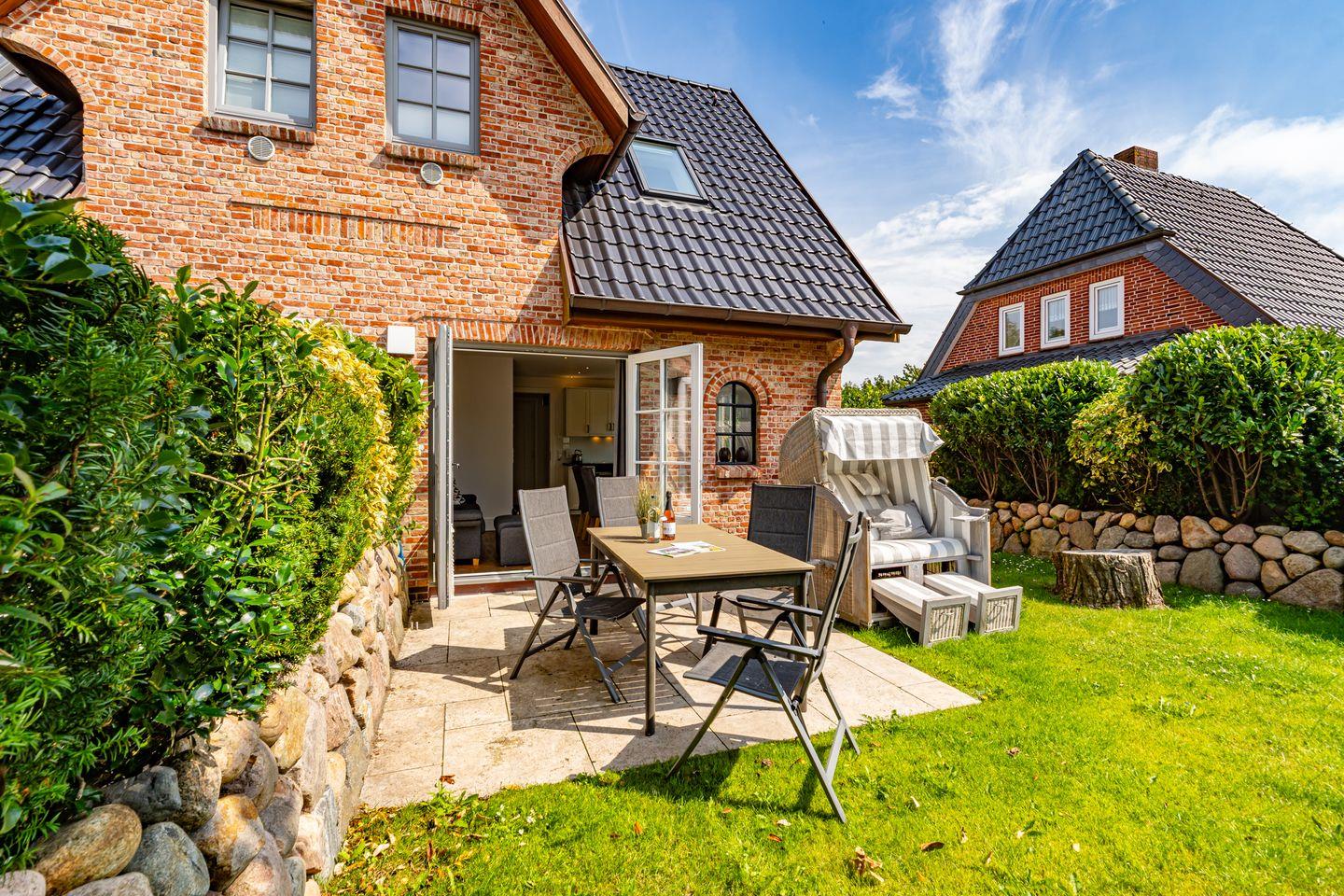 Modernes End-Ferienhausteil auf Sylt mit Sauna, Terrasse und Garten für entspannte Urlaubstage.