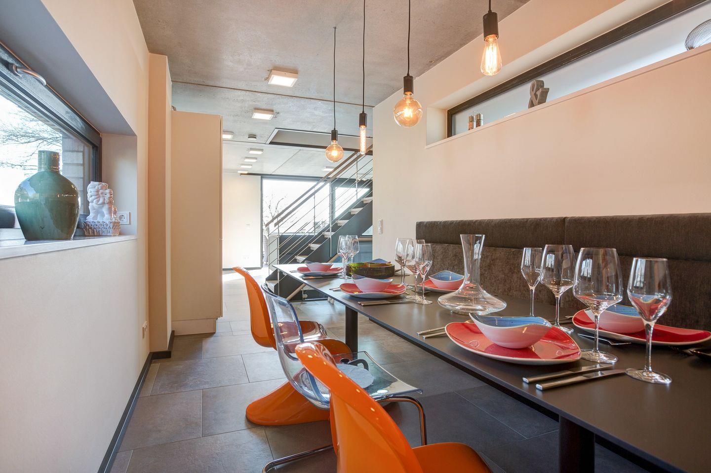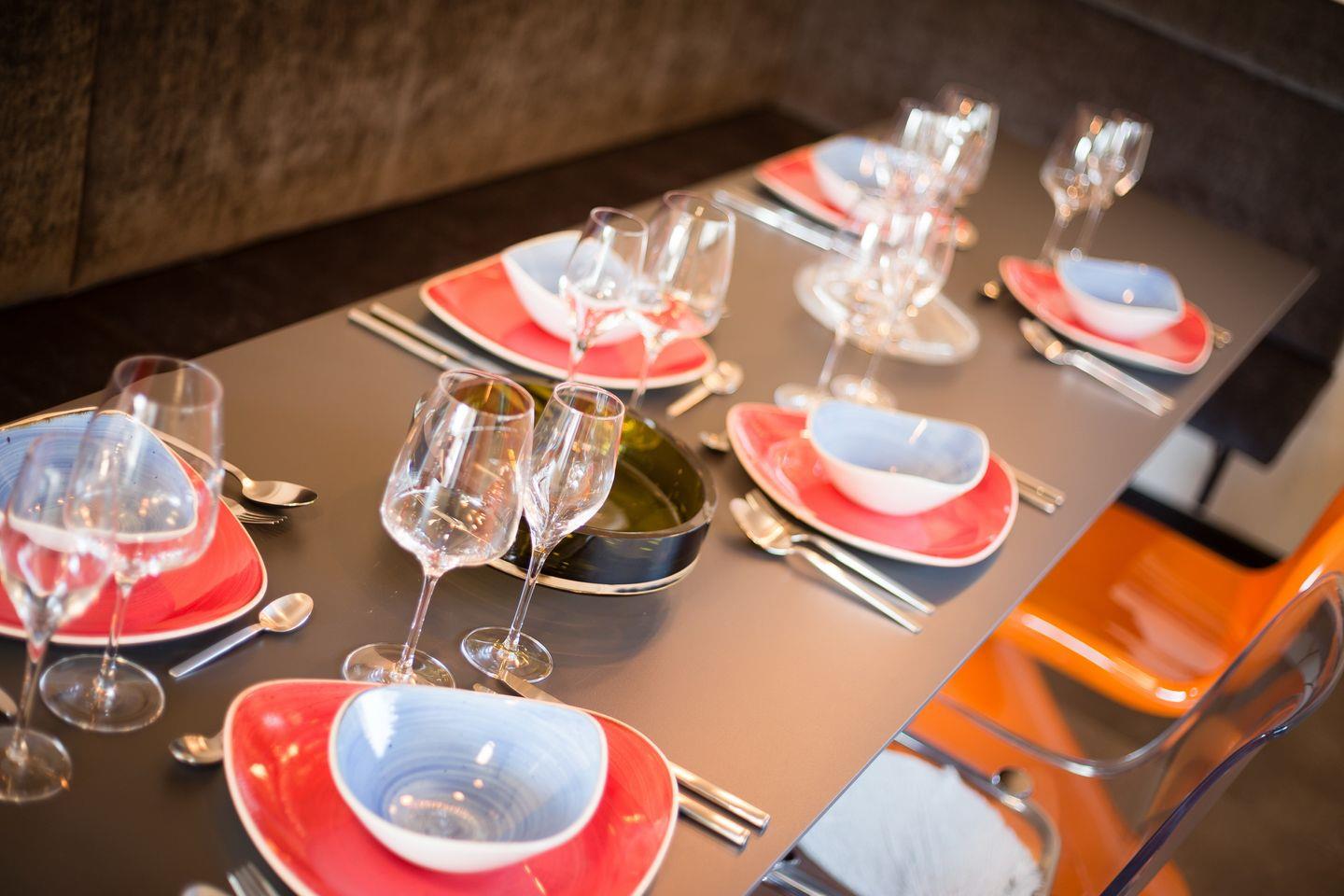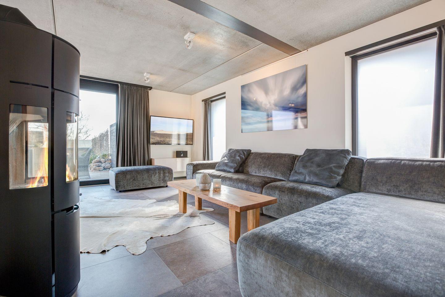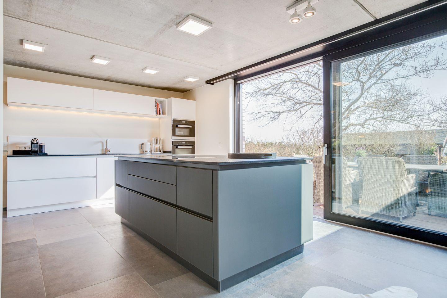 Großzügiger Wohnraum mit Flatscreen-TV. WLAN und eine überkomplette technische Ausstattung verstehen sich von selbst. Ein Kaminofen im Couchbereich lässt Ihren Urlaubstag herrlich entspannt bei einem Glas Rotwein ausklingen. Beeindruckende offene Küche mit zentralem Küchenblock. Hier kann man sich selbst als ambitionierterer Hobbykoch nach Herzenslust austoben und feine Menues zaubern. Espressomaschine, Weinschrank, Induktionsherd sowie Geschirrspülmaschine runden die überkomplette Küchenausstattungen ab. Die große Esstafel mit den legendären VITRA Pantone-Chairs bietet auch für die ganz große Runde Platz.