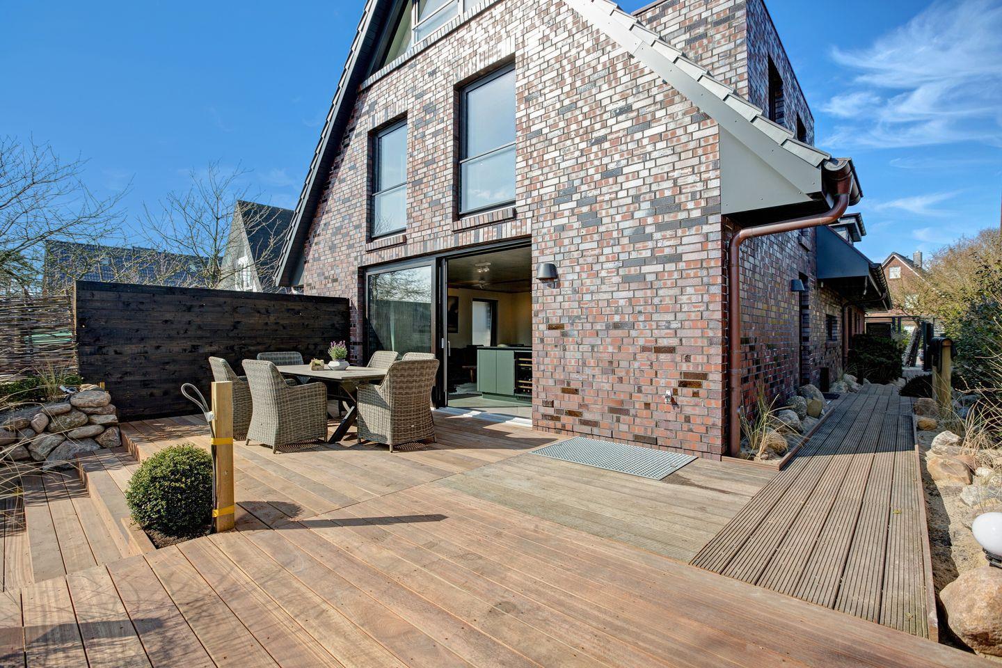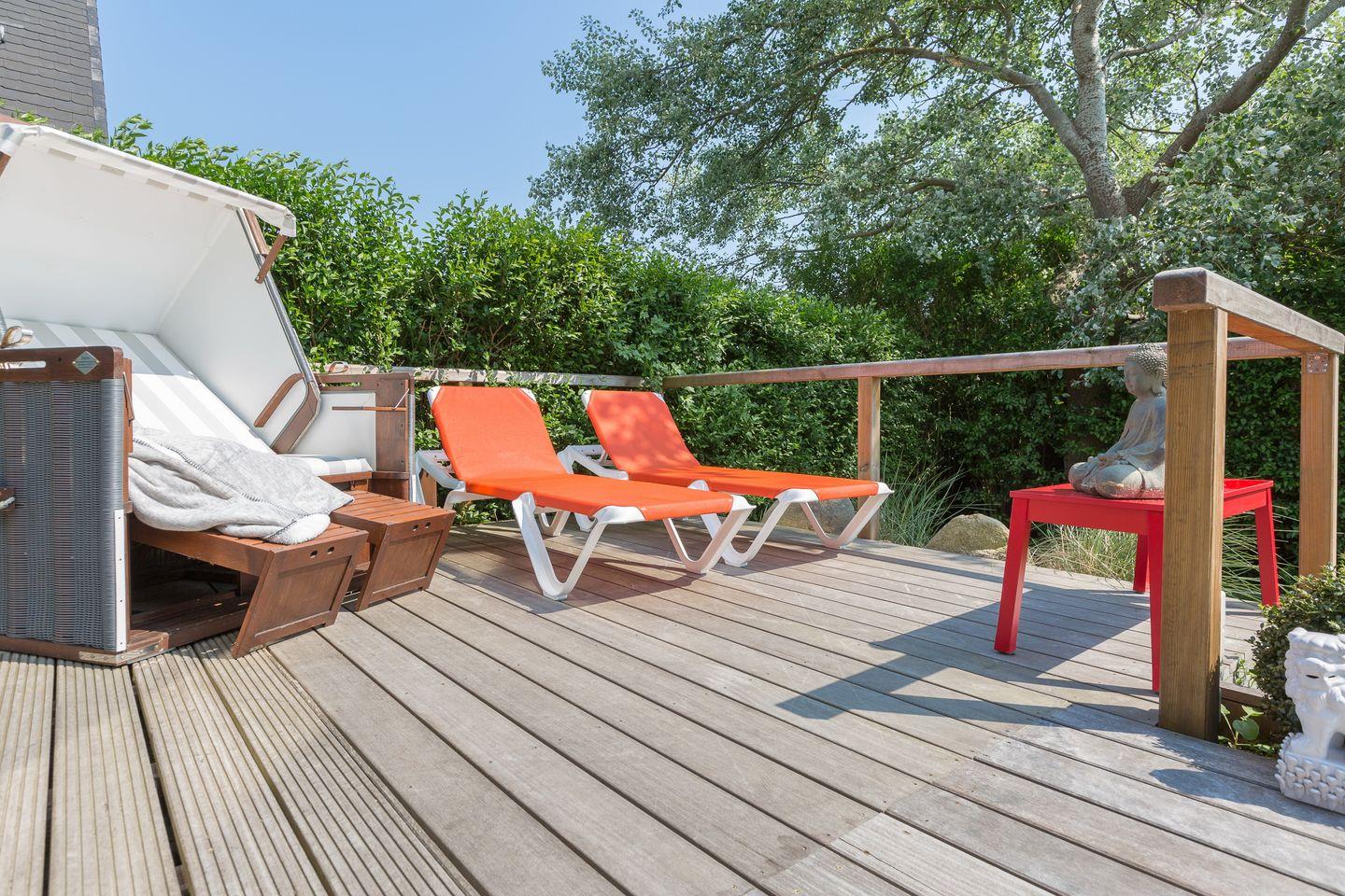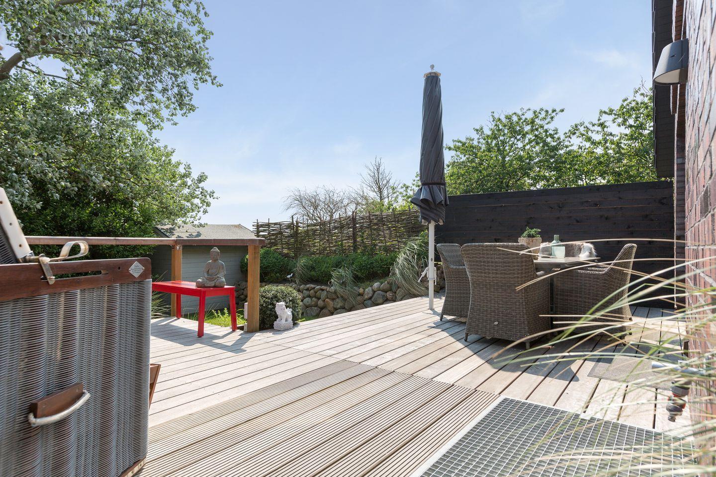 Ihr Terrassenbereich ist schlichtweg ein Traum, wurde dieser liebe- und kunstvoll angelegt. Hier können Sie nach Herzenslust die Sylter Sonne genießen - dank der Südausrichtung gerne auch ausgiebig. Wertiges Terrassenmobiliar finden Sie ca. von April bis Oktober vor, und auch ein Sylter Strandkorb darf hier natürlich nicht fehlen. Als weiteres Highlight können Sie mit dem vorhandenen Elektrogrill wunderbare Grillabende open air zelebrieren.