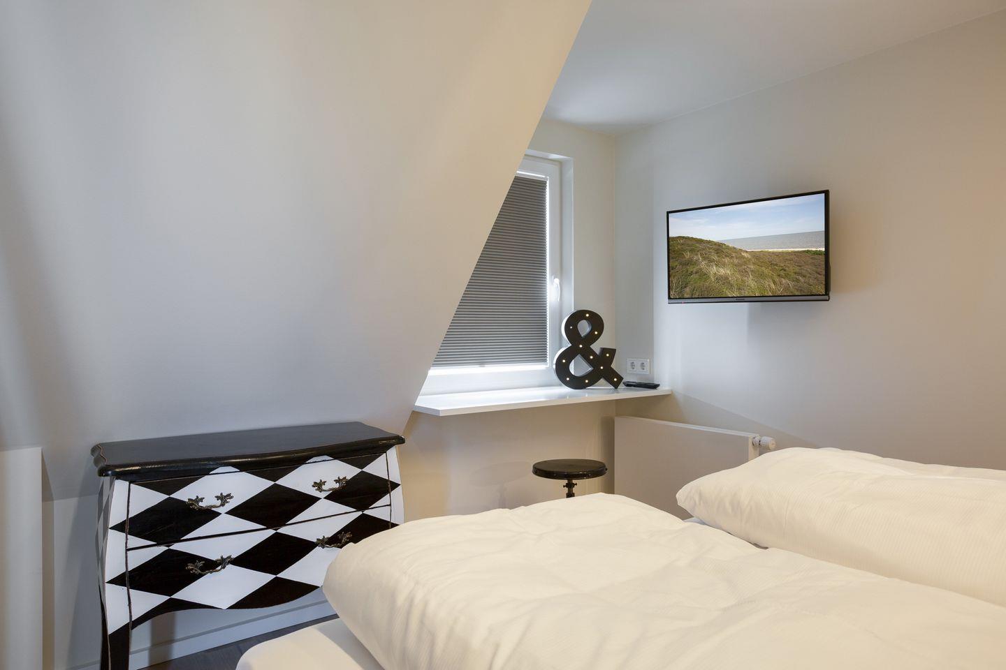 Das Obergeschoss des Long Beach House stellt Ihnen zwei Schlafräume mit je einem Doppelbett (180cmx200cm).Schlafraum mit Kojenbetten (80x190cm [&] 90x190cm)