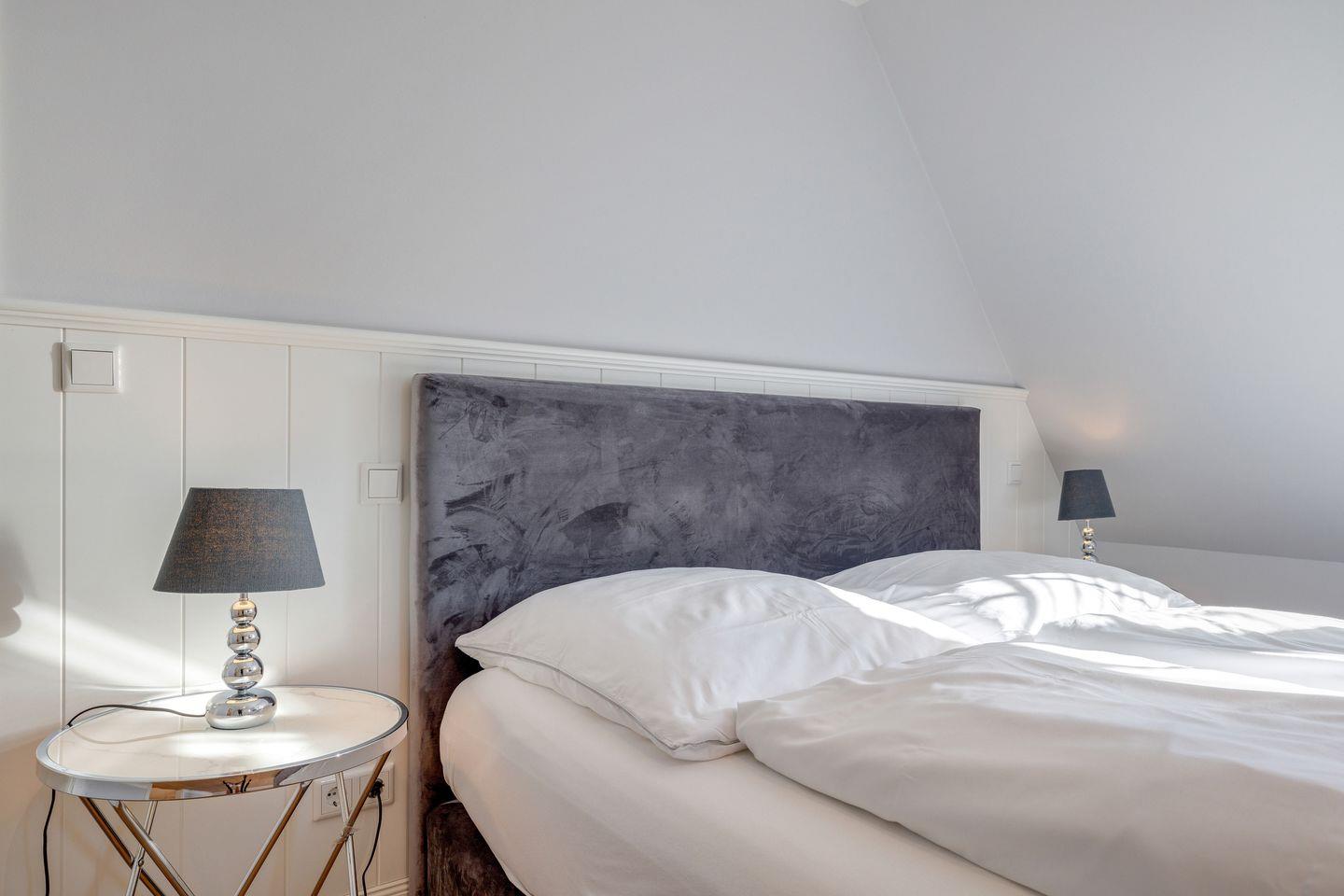 OG: ein Schlafzimmer mit Doppelbett (180x200cm) und Flatscreen-TV, ein Schlafzimmer mit Doppelbett (160x200cm) und Flatscreen-TV, ein Badezimmer mit Dusche, Badewanne und WC sowie ein weiteres Bad mit Dusche und WC