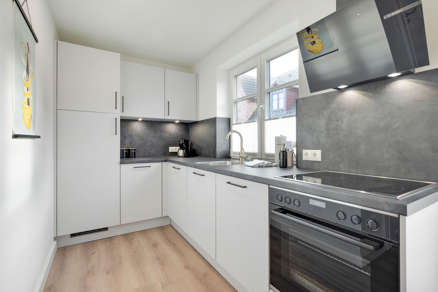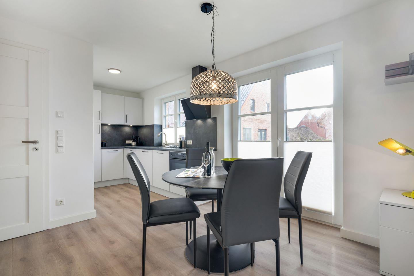 Das Ferienhaus verfügt über zwei gemütliche Schlafzimmer, die Ihnen einen ruhigen Schlaf garantieren. Das offene Wohnkonzept vereint eine moderne Küche mit einem stilvollen Wohnzimmer, das über eine bequeme Sofaecke, ein Essbereich und digitale TV-Anschlüsse verfügt. Hier können Sie entspannte Abende verbringen oder sich nach einem erlebnisreichen Tag an der frischen Nordsee-Luft zurücklehnen. Die voll ausgestattete Küche ist mit allem ausgestattet, was Sie für die Zubereitung Ihrer Mahlzeiten benötigen: Kühlschrank, Geschirrspüler, Mikrowelle, Toaster und Kaffeemaschine sind nur einige der Annehmlichkeiten, die Ihnen zur Verfügung stehen.