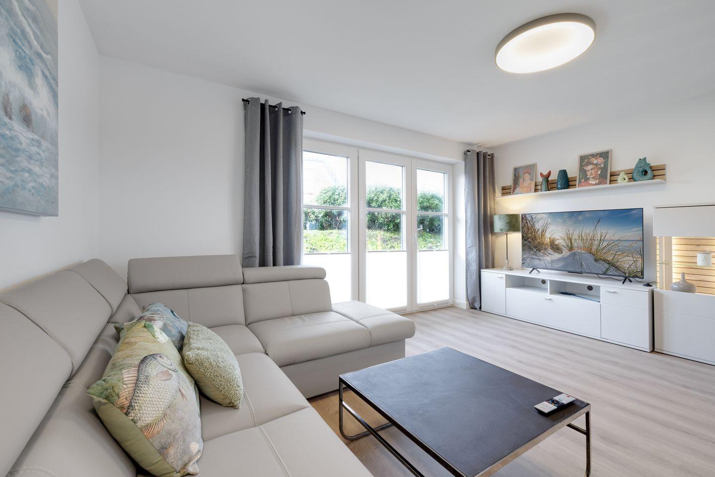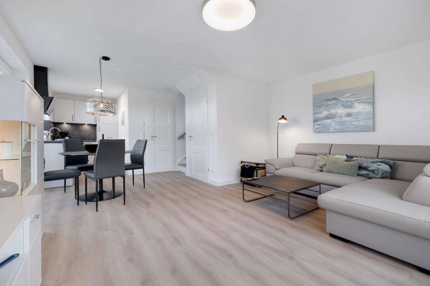 Das helle Wohnzimmer ist der ideale Ort für entspannte Stunden. Hier können Sie die Zeit mit einem guten Buch verbringen oder sich beim Fernsehen mit einem der zwei TVs entspannen. Die große Terrasse mit Gartenmöbeln lädt zum Verweilen ein und bietet Ihnen die Möglichkeit, eine Tasse Kaffee oder ein Glas Wein im Freien zu genießen. Der Garten ist wunderbar gestaltet und eignet sich hervorragend für entspannende Nachmittage unter freiem Himmel.