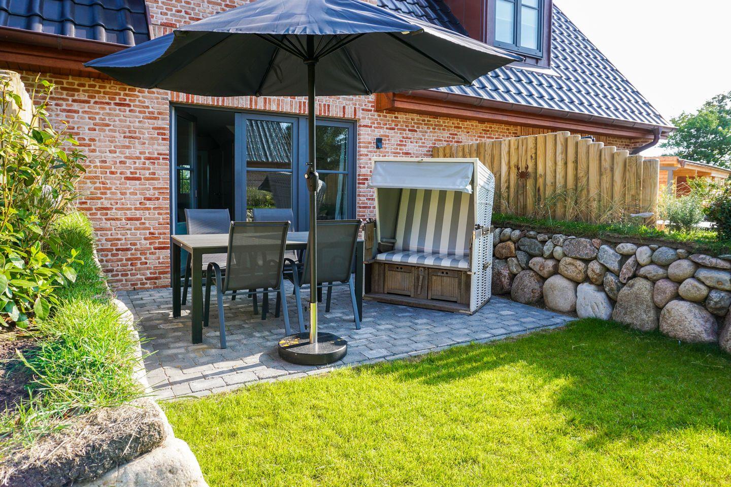 Ein weiteres Highlight ist die schöne Terrasse, die Ihnen nicht nur frische Luft, sondern auch einen Blick auf den Garten mit Gartenmöbeln und einem Strandkorb bietet – perfekt zum Entspannen mit einem guten Buch oder einem Glas Wein. Außerdem sorgt die hauseigene Sauna für wohlige Entspannung nach einem erlebnisreichen Tag, an dem Sie die Insel erkundet haben.