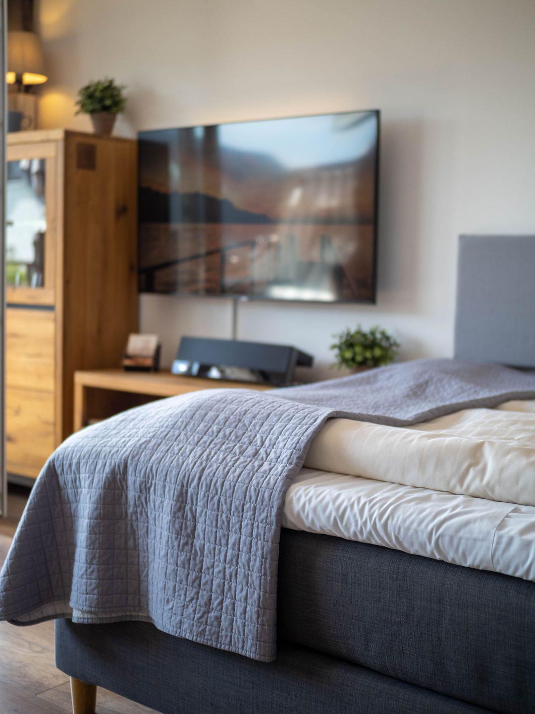 Moin Moin, und herzlich willkommen im Appartement "Abendsonne". Diese charmante 1- Zimmer-Ferienwohnung liegt quasi mitten im Herzen von Sylt, in Wenningstedt, und das auch noch ganz zentral im Ort. Von hier aus ist es nur ein Katzensprung bis zu "Feinkost Meyer" oder zum Fahrradverleih, und sogar ein gut sortierter Shop für Hund und Herrchen/Frauchen im Erdgeschoss dieses familiären Appartementhauses, eine Apotheke und der Dorf-Arzt schräg gegenüber sind Ihre "Nachbarn". Zum Weststrand und zum Kliff brauchen Sie zu Fuß keine zehn Minuten, zum idyllischen Dorfteich und der Norddörfer Kirche keine fünf. Die Wohnung ist neu und hochwertig eingerichtet, sie hat einen Süd-Balkon mit Strandkorb und ein gemütliches Boxspringbett. Zur modernen Ausstattung gehören außerdem Highspeed-Wlan, ein großer Smart-TV (mit TV-Apps wie netflix und Amazon prime) und eine bluetooth-fähige Stereo-Anlage.