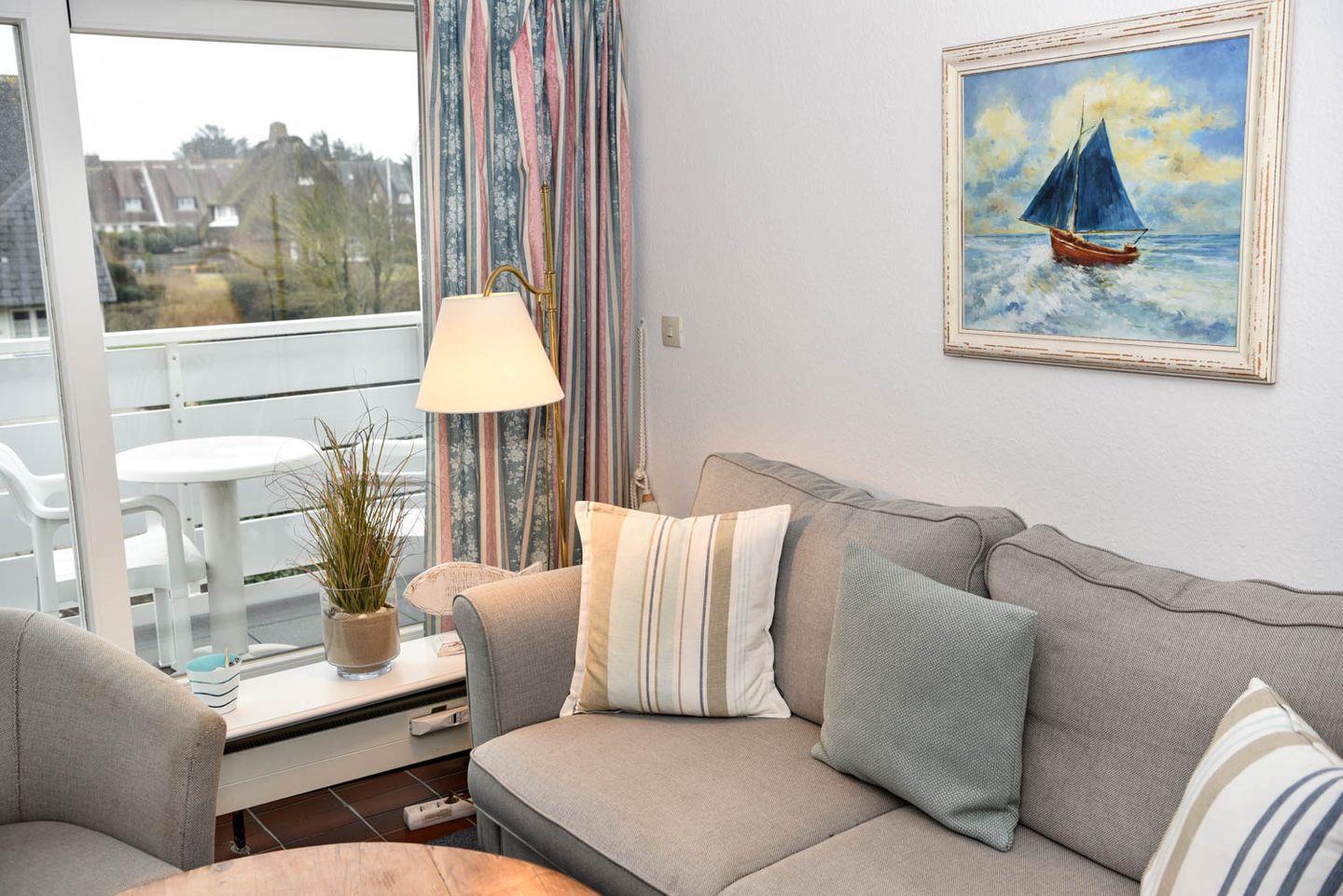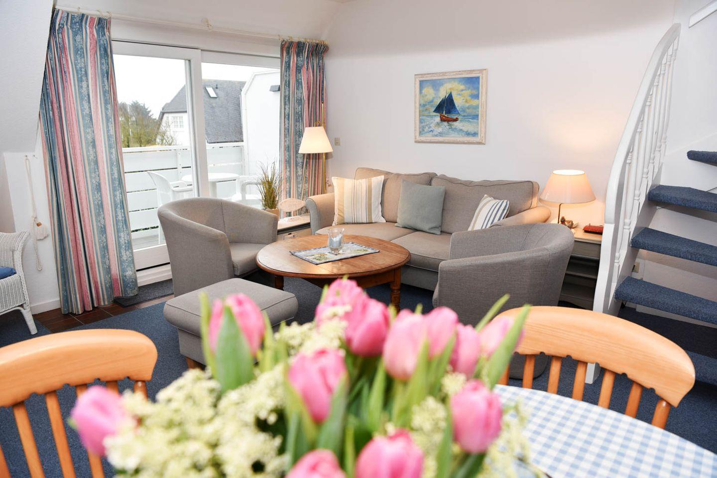 Charmante 3-Zimmer-Maisonette in ruhiger Lage auf Sylt mit möbliertem Südbalkon und kurzer Entfernung zum Strand.