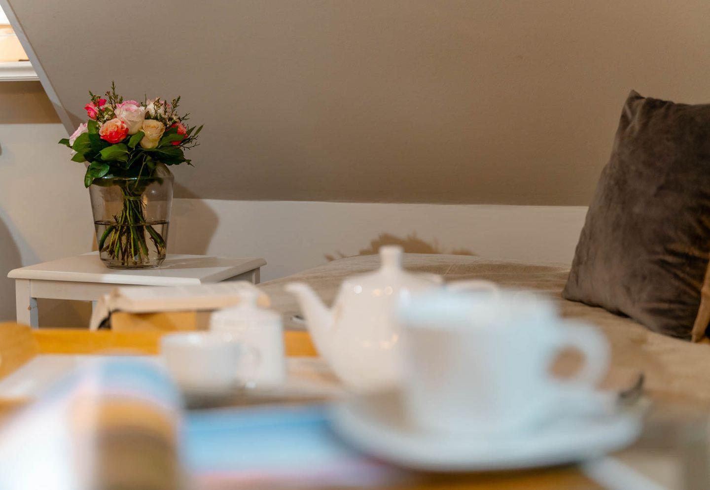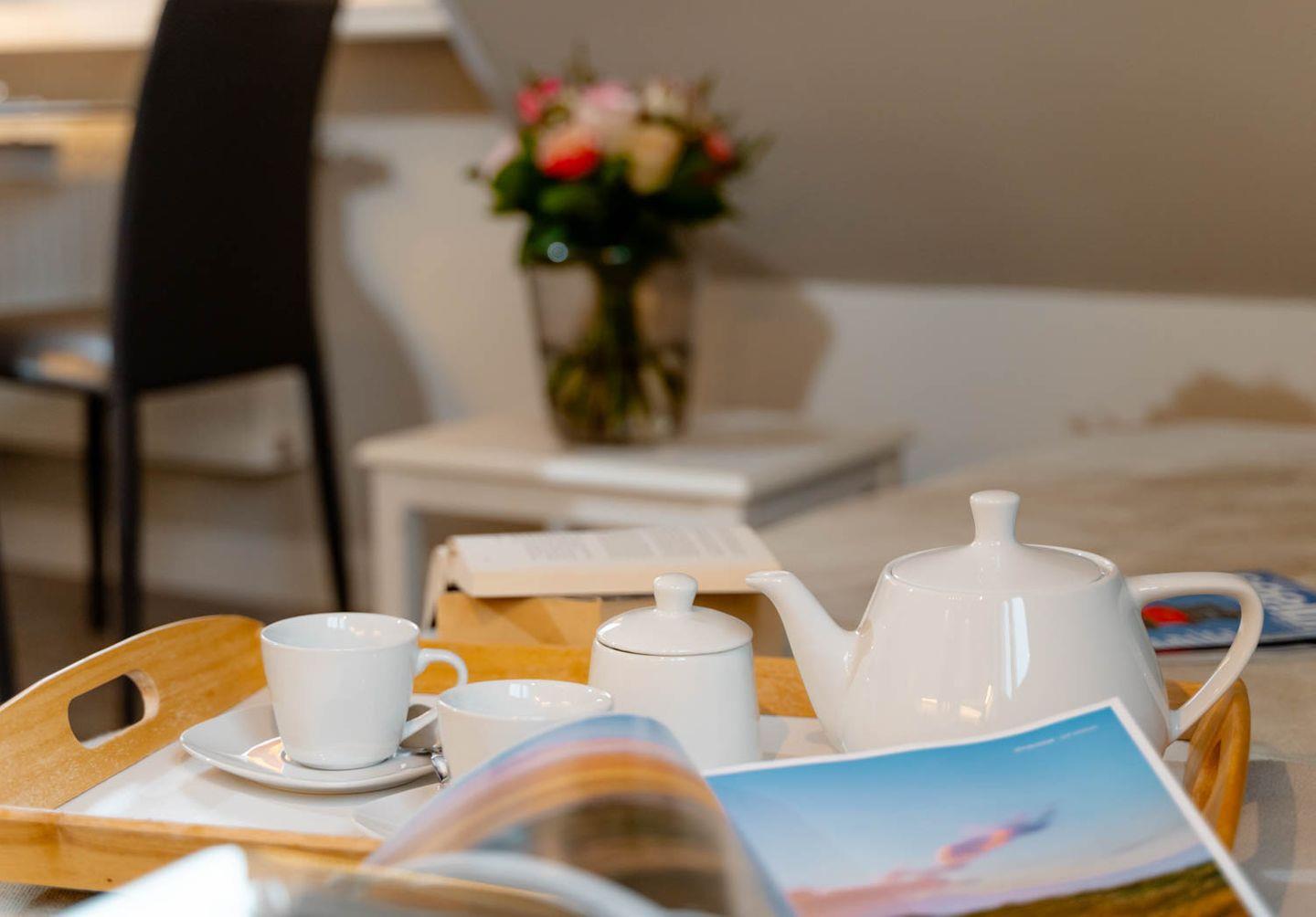 Moin, moin, willkommen im großzügigen Ferien-Appartement "Buhne 73", das Platz und allen Komfort für bis zu 6 Personen bietet und am allersüdlichsten Ende von Wenningstedt zu Hause ist. Das heißt natürlich genaugenommen, dass diese 4-Zimmer-Ferienwohnung ganz in der Nähe des kleinen beschaulichen Nordwäldchens liegt, das Wenningstedt und Westerland trennt, die Inselmetropole und der Strand also auch nicht weit entfernt sind. Die Wohnung liegt im Obergeschoss und Dachgeschoss eines vor Kurzem erbauten 5-Parteien-Hauses, ist nach Westen ausgerichtet und hat sogar einen eigenen Balkon mit attraktiver Brüstung aus Glas. Überhaupt liegt dieses Haus nicht nur sehr schön etwas abseits mit Blick auf Pferdewiese und Wäldchen, sondern ist auch noch besonders eingerichtet: sehr klar, hell, luftig und ohne überflüssigen Firlefanz, kurz gesagt – inselfrisch und wirklich schön. Drei Doppelbetten, eine vollausgestattete Küche, die kommunikativ in den Wohnbereich integriert ist, ein Bad und ein Extra-WC mit Waschbecken sowie eine Waschmaschine inklusive Trockner und ein eigener Parkplatz machen "Buhne 73" zu einem perfekten Partner für Ihre Ferien. Woher der Name kommt? Buhnen, das waren die alten und wie sich heute zeigt unnützen Wellenbrecher aus Beton oder Holz, die jetzt an der Westküste entfernt werden und die 73 verdankt die Wohnung schlicht ihrer Hausnummer.