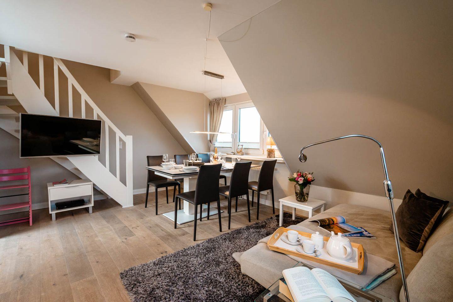 Modernes Ferienapartment "Buhne 73" in Wenningstedt mit Balkon, Nähe Strand und Nordwäldchen, perfekt für erholsame Tage auf Sylt.