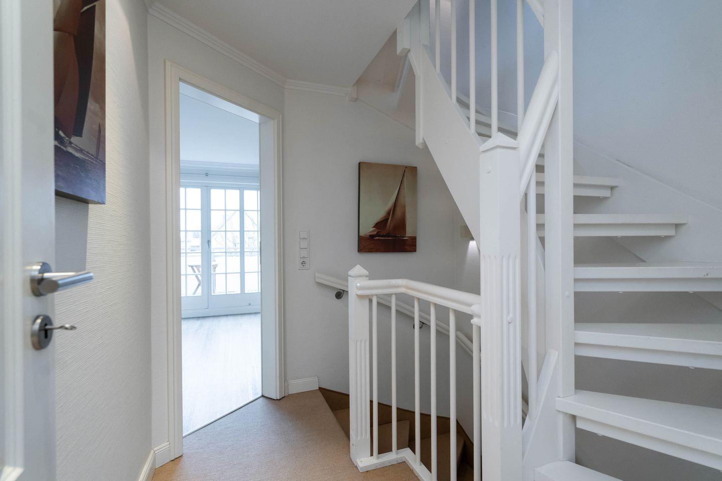 Moin Moin, Sie suchen was für Ihre Großfamilie? Sie sind mit ihren besten Freunden unterwegs? Sie mögen es luxuriös, besonders großzügig und lieben Farben in allen zauberhaften, lichten Schattierungen des Sylter Sands? Dann ist dieses Haus im Süden von Wenningstedt perfekt für Sie und Ihre Lieben. Auf vier Ebenen können sich bis zu sieben Personen entspannt ausbreiten, helle Farben und Korbmöbel mit einem Touch von Sommerfrische sorgen für viel Flair. Der Clou: Dieses Haus hat nicht nur eine bestechend schöne, offene Küche, sondern auch noch einen einladenden Esstisch, an dem man gerne laaange sitzen bleibt. Was sonst noch zu diesem Traumhaus gehört? Genau, ein großer Garten in Süd-West-Ausrichtung und ein kleiner Balkon mit Meerblick (!) machen dieses Haus zum Traumhaus.