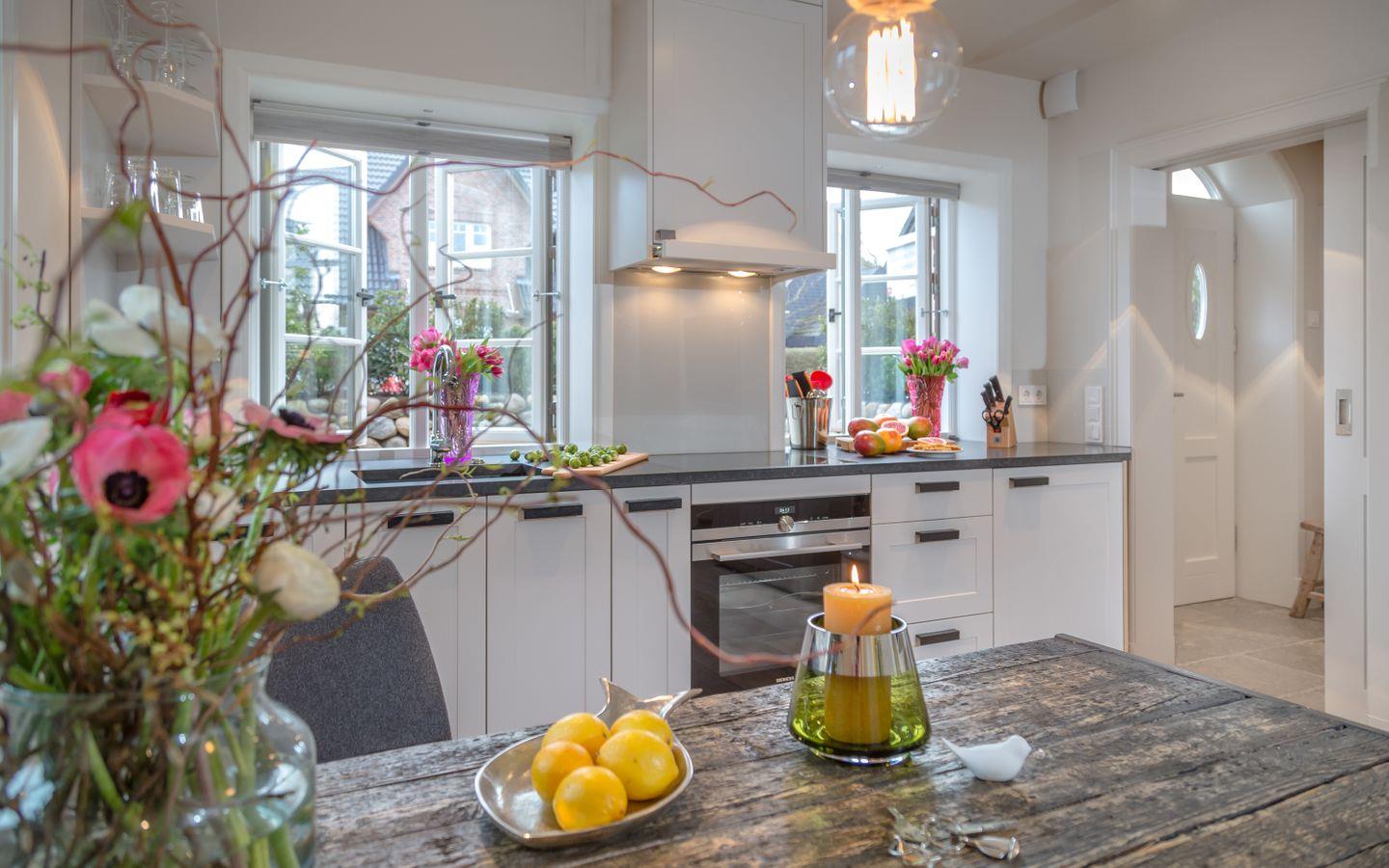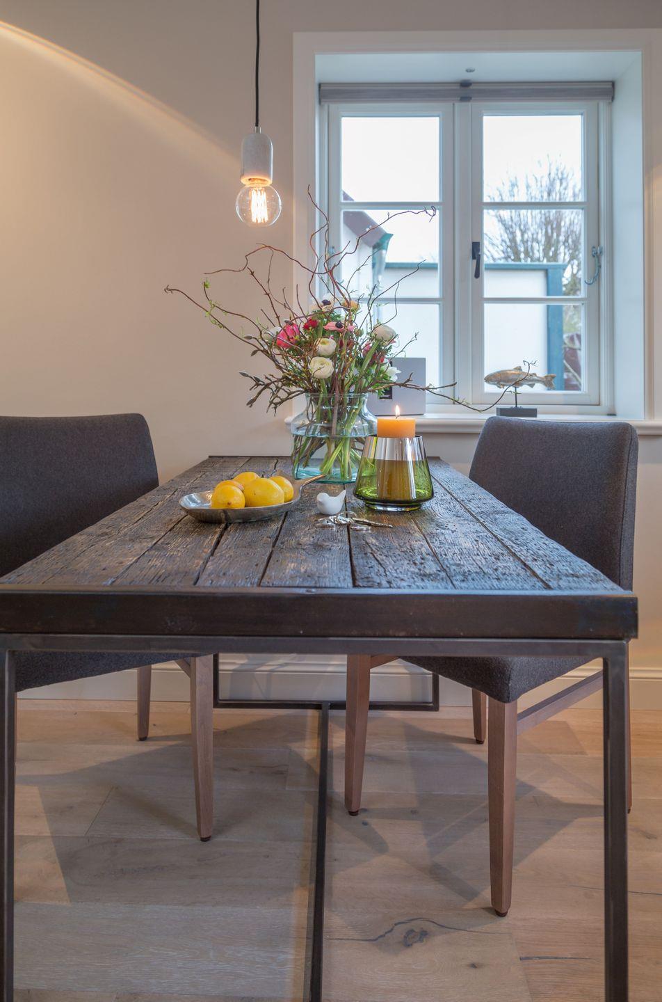 Kulinarische Freuden erwarten Sie in der voll ausgestatteten Küche, die mit modernen Geräten, wie Herd, Backofen, Kühlschrank, Gefrierfach und Spülmaschine ausgestattet ist. Die Küche bietet ausreichend Platz, um Ihre Kochkünste auszuleben. Genießen Sie Ihre Mahlzeiten auf der großen Terrase, die vollständig geschlossen ist und Ihnen einen Blick in den Garten bietet, wo Sie entspannen und die frische Sylter Luft genießen können. Sonnenliegen und Gartenmöbel laden dazu ein, den Tag draußen zu verbringen.